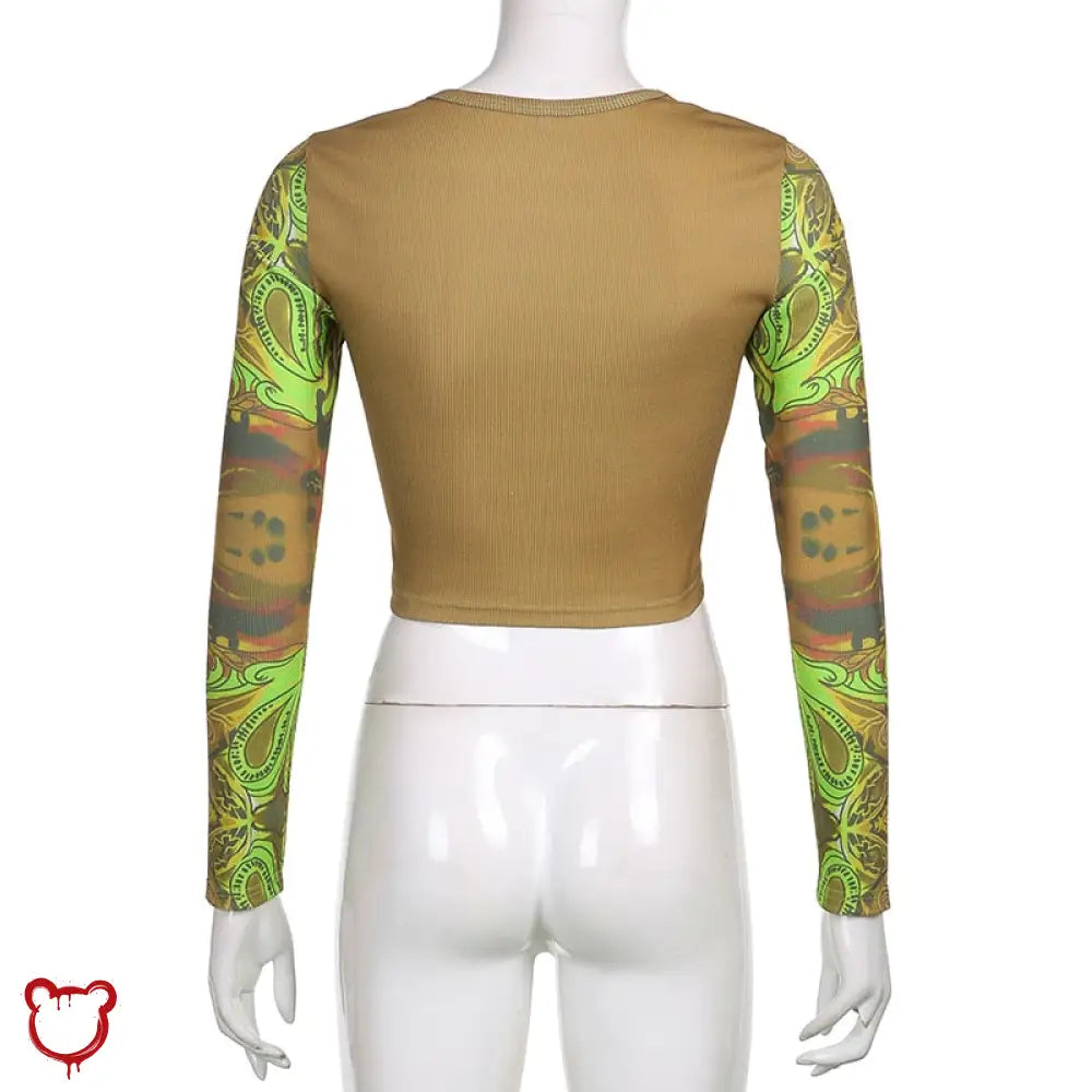 “Printed Paige” Harajuku Crop Top ‐ Green / L