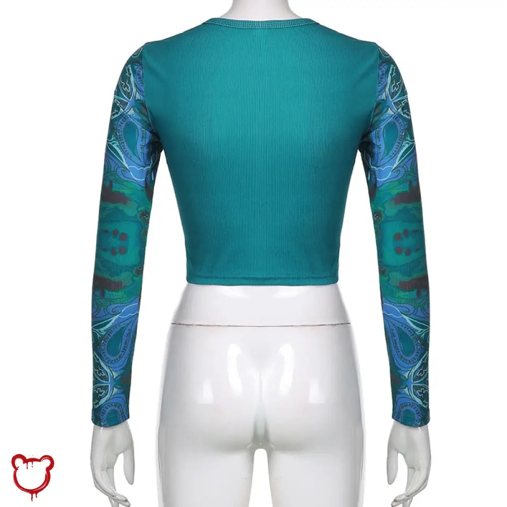 “Printed Paige” Harajuku Crop Top ‐ Green / S