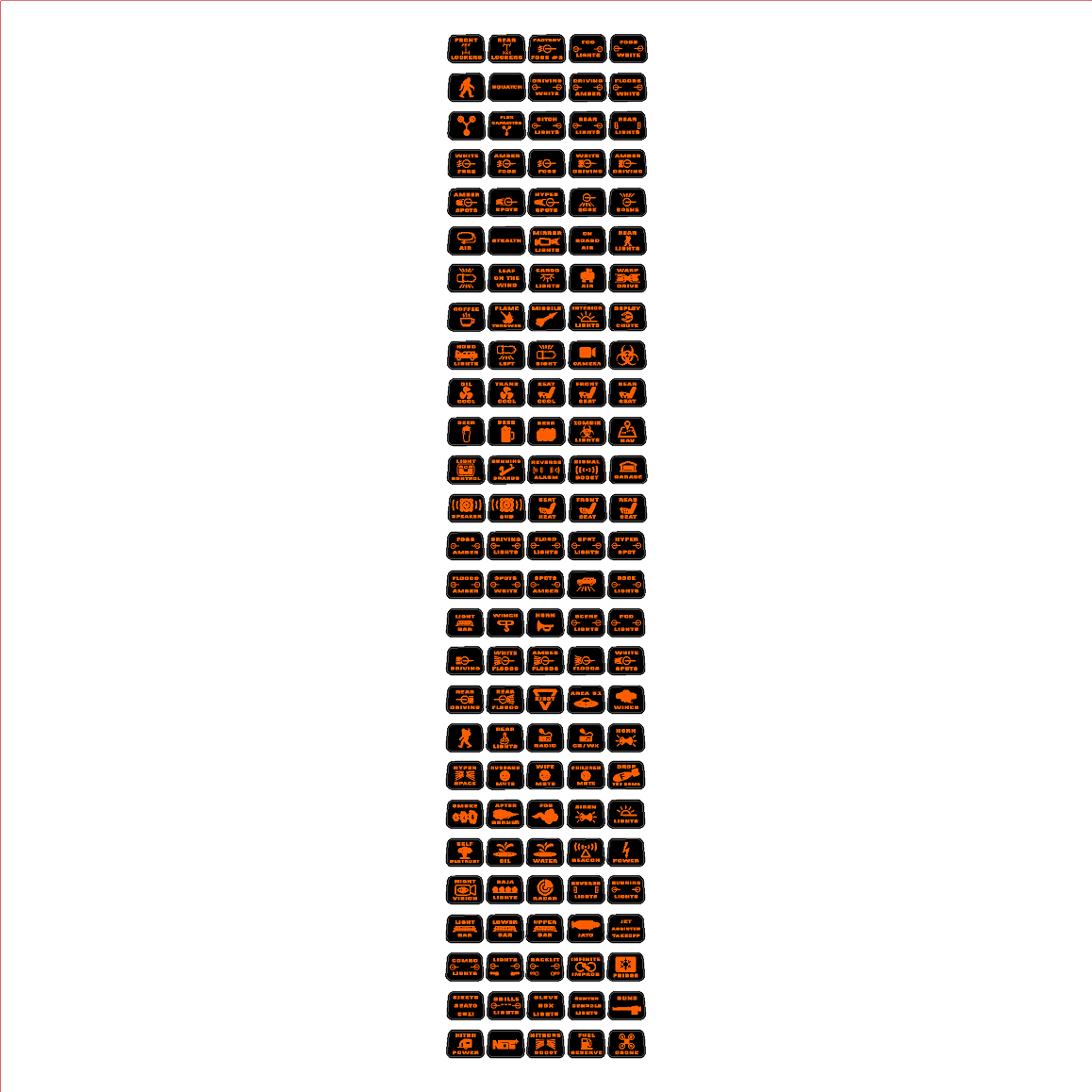 Printed Series Auxiliary Switch Labels (Upfitter) - 2021+ Bronco / F-150 Tremor / F-150 Raptor / Ranger Tremor / 2023+ Super Duty / 25+ Bronco Sport ‐ Symbols Only