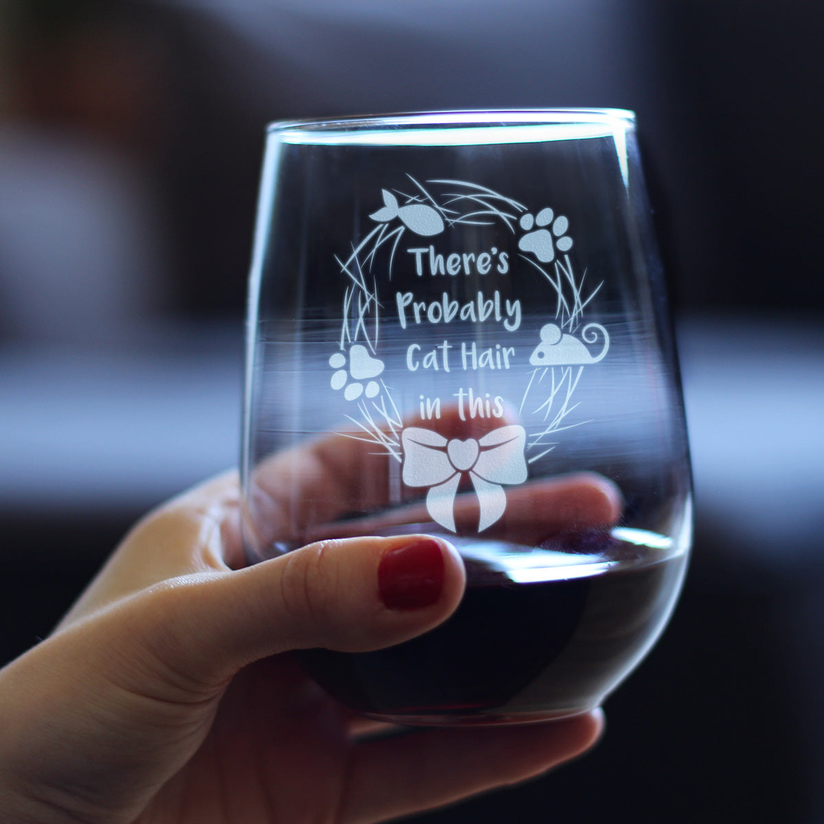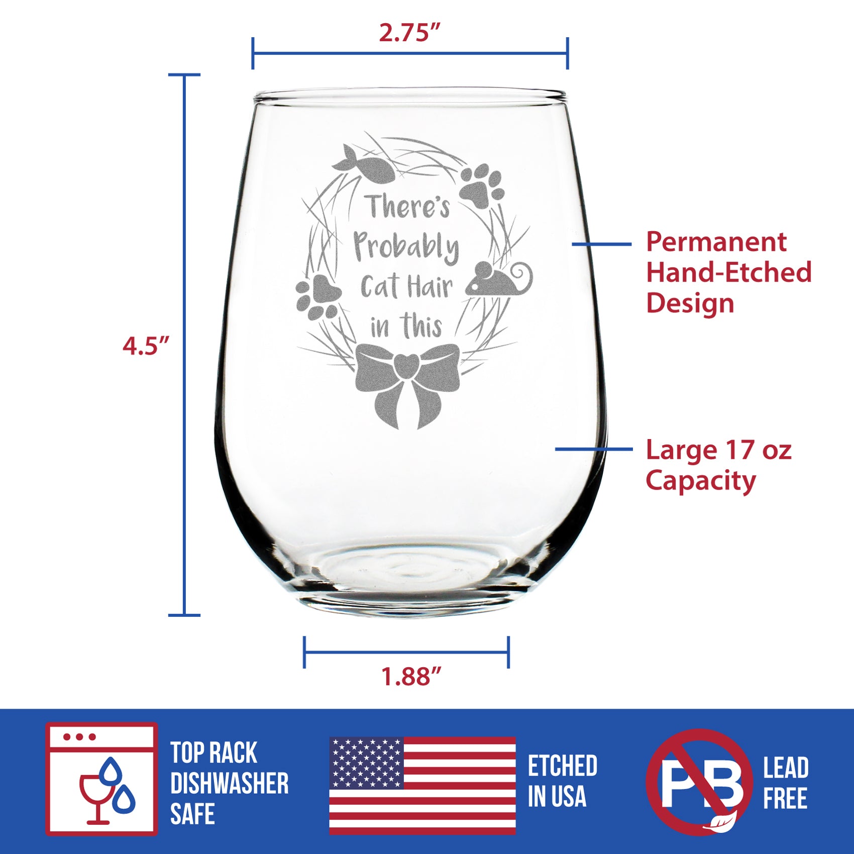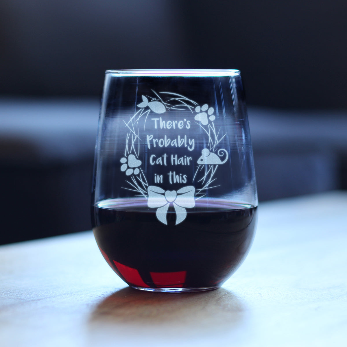Probably Cat Hair In This - Stemless Wine Glass - Funny Cat Gifts for Women & Men - Large 17 Ounce Glasses