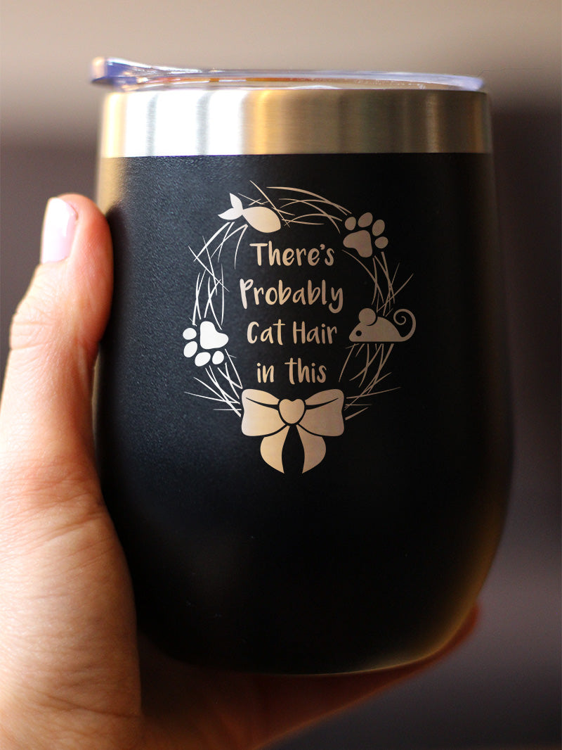 Probably Cat Hair In This - Wine Tumbler Cup with Sliding Lid - Stainless Steel Insulated Mug - Funny Cat Gifts for Women & Men