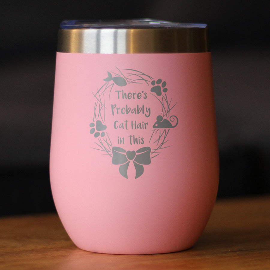 Probably Cat Hair In This - Wine Tumbler Cup with Sliding Lid - Stainless Steel Insulated Mug - Funny Cat Gifts for Women & Men ‐ Pink