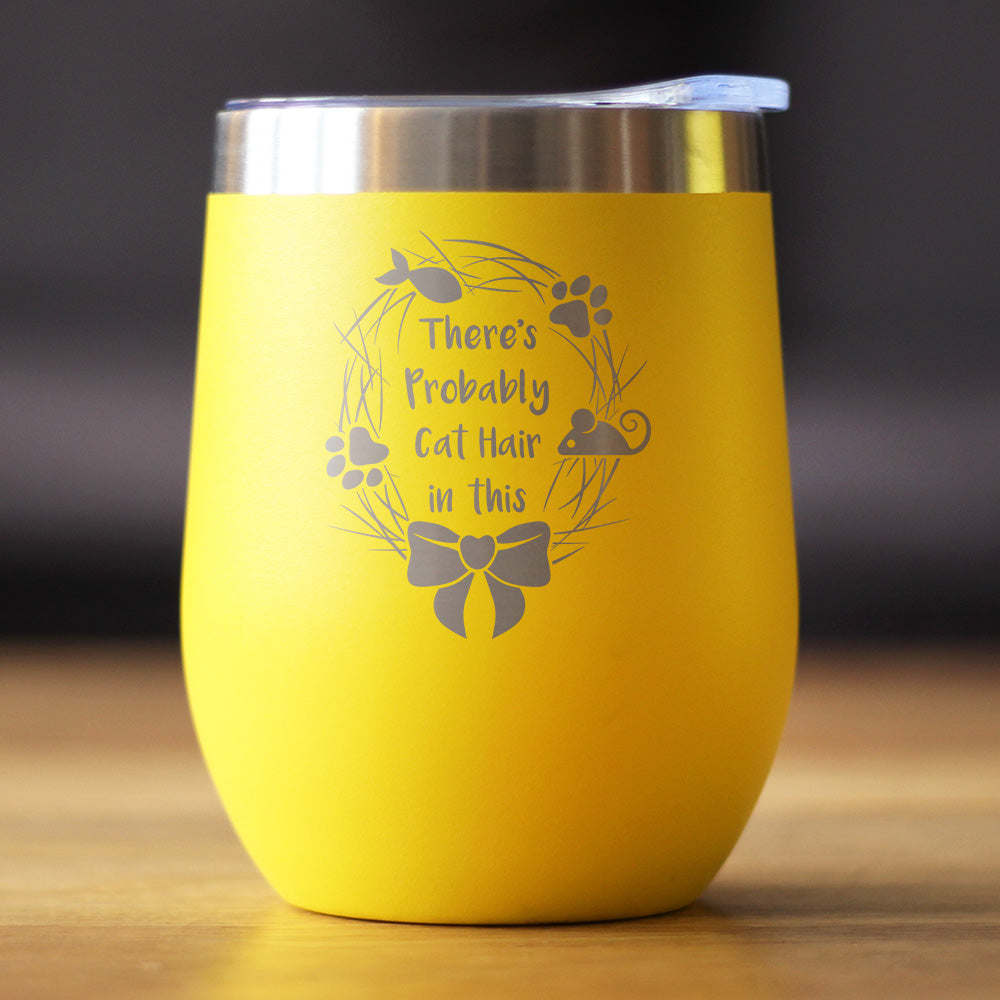 Probably Cat Hair In This - Wine Tumbler Cup with Sliding Lid - Stainless Steel Insulated Mug - Funny Cat Gifts for Women & Men ‐ Yellow