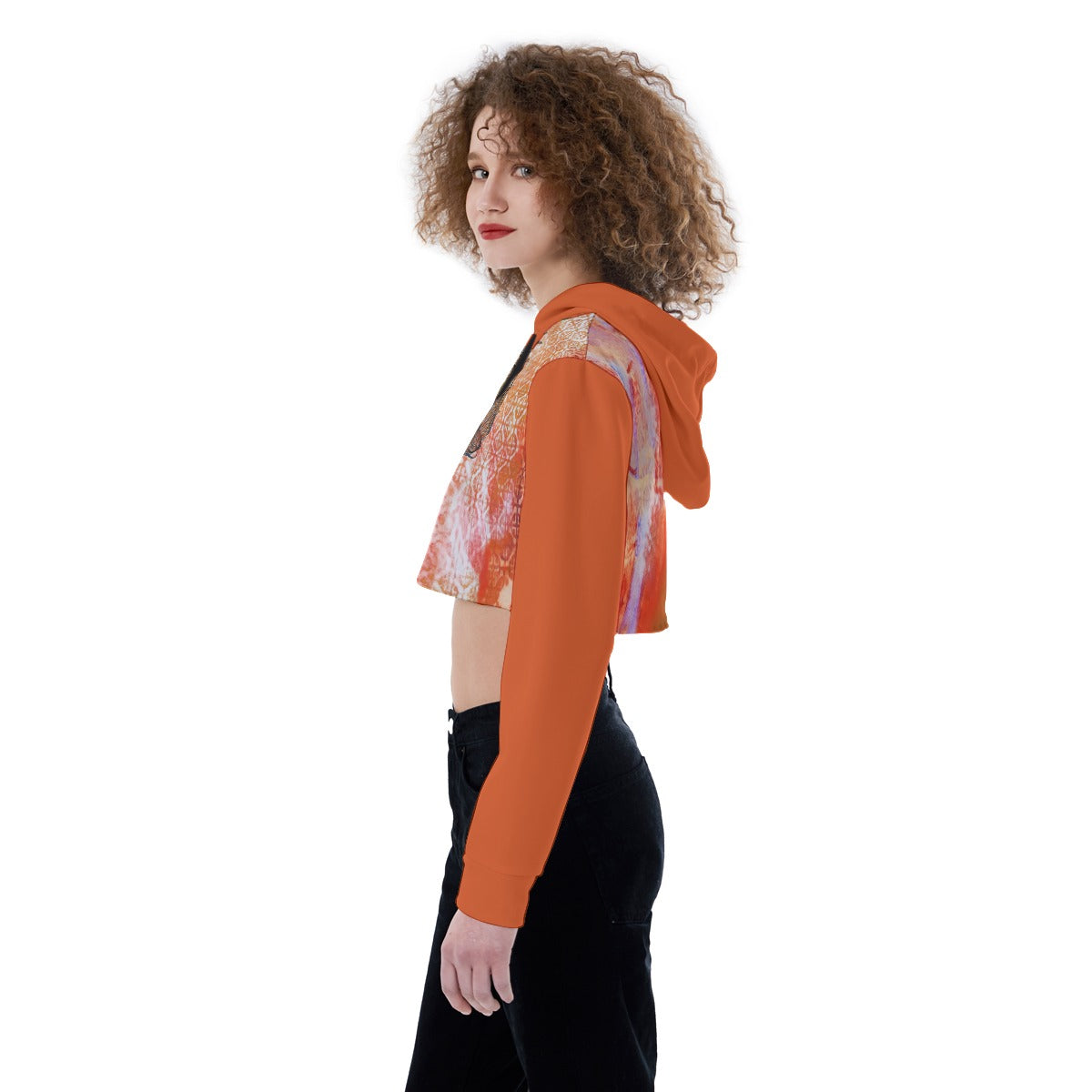 Introducing the hand-painted print Drop Shoulder Crop Hoodie with a drawstring hood and long sleeves. This versatile crop top is perfect for casual, school, work, sports, or daily wear.