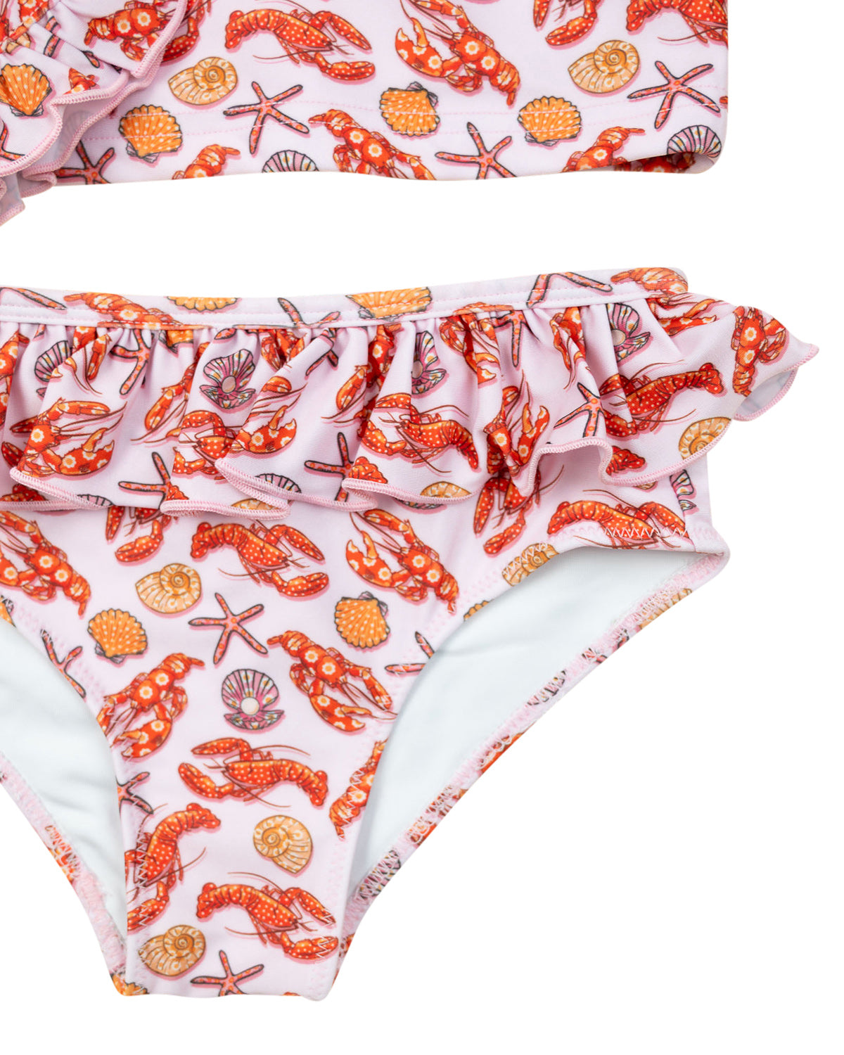 Make waves with our Red as a Lobster Long Sleeve Bikini, a chic swimsuit set perfect for sunny adventures! This two-piece bikini features a classic red, white, and pink palette with a lobster and shell pattern that celebrates Americana charm. Designer details include a long-sleeve rash guard top for extra sun protection, paired with matching bottoms for a flattering and secure fit. Whether at the beach or poolside, this stylish bikini ensures your little one makes a splash in comfort and style!