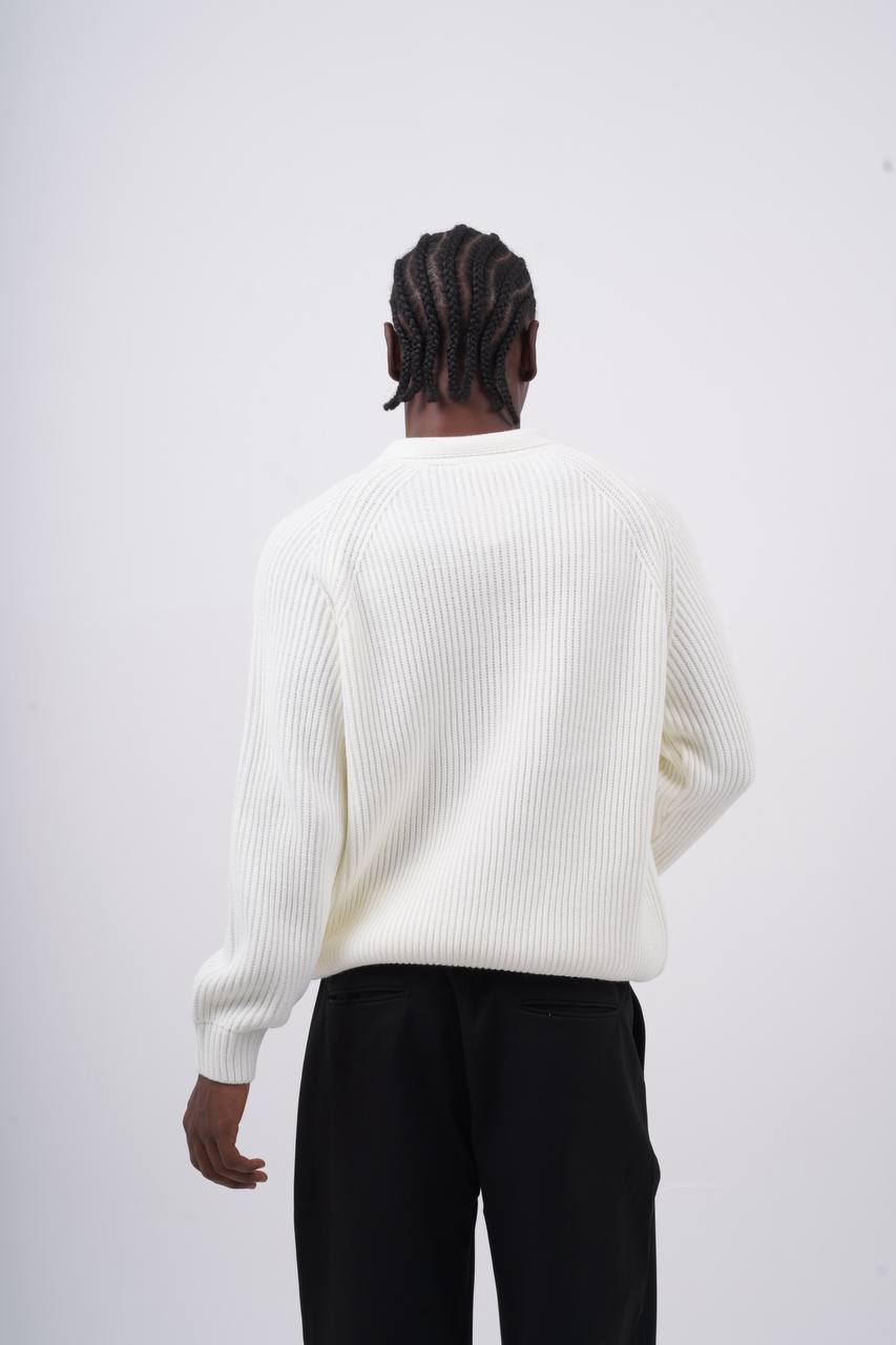 Ribbed Knit Half-Zip Sweater ‐ White / XL