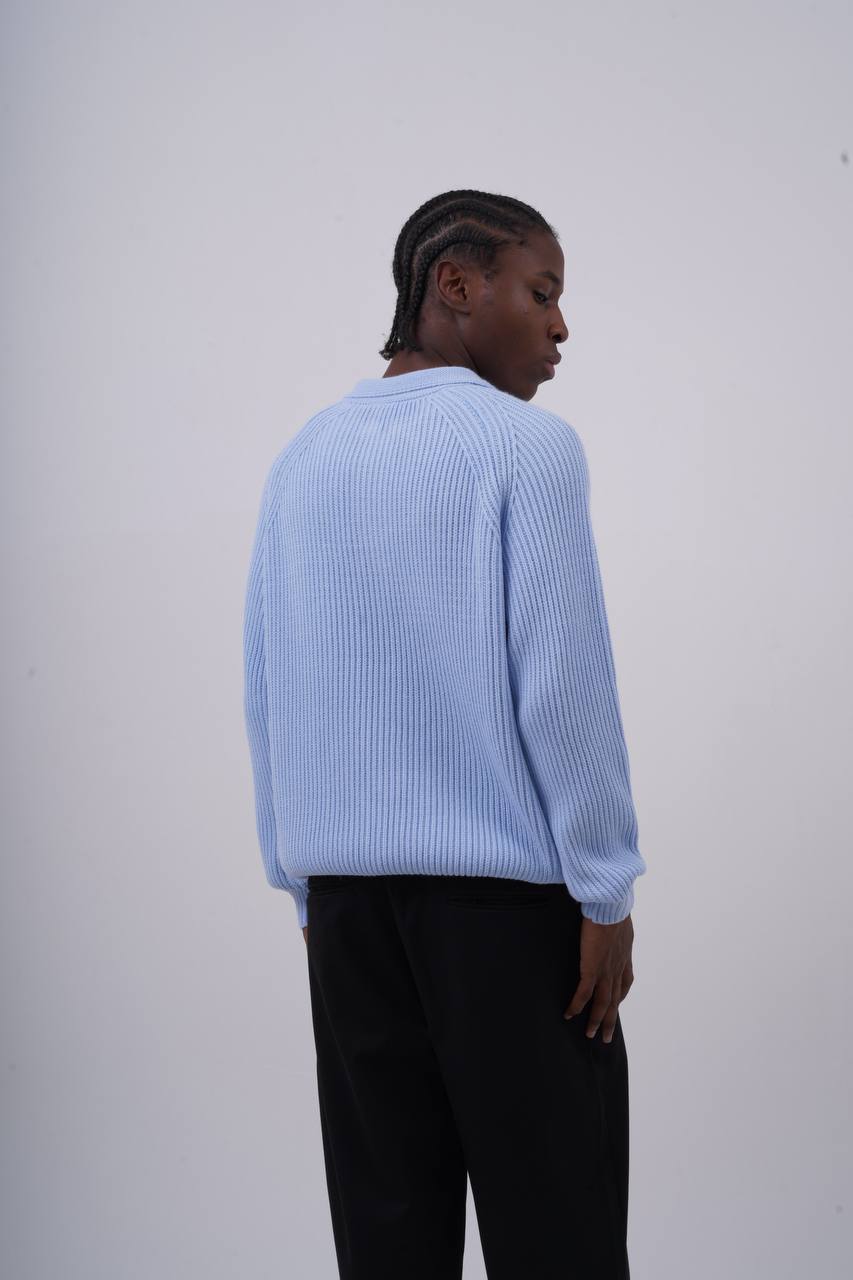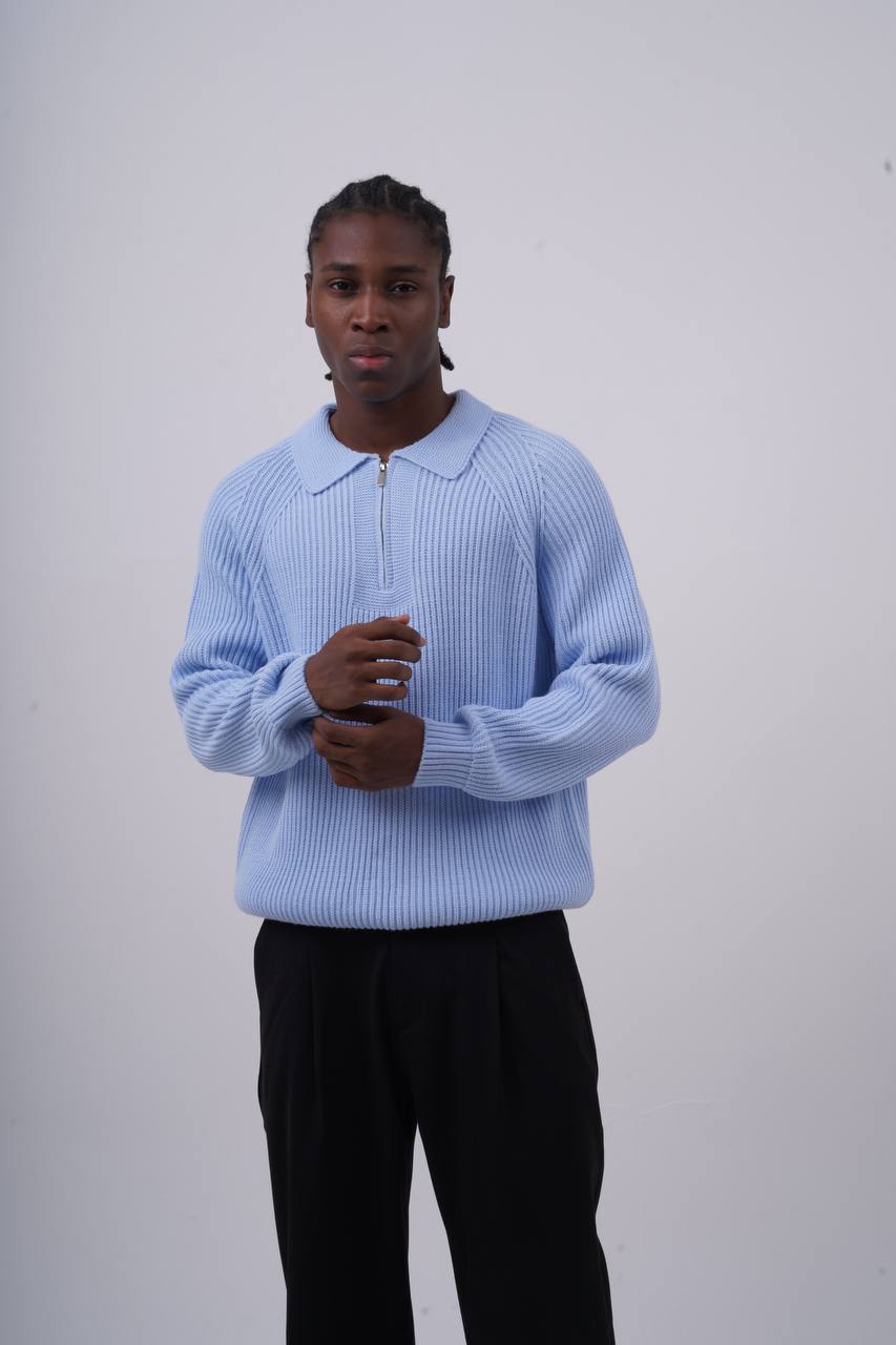Ribbed Knit Half-Zip Sweater ‐ Light Blue / M