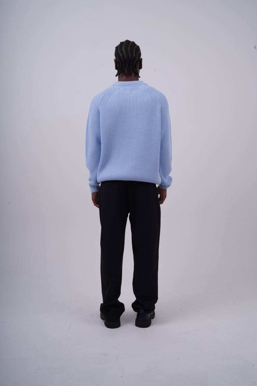 Ribbed Knit Half-Zip Sweater ‐ Light Blue / XL