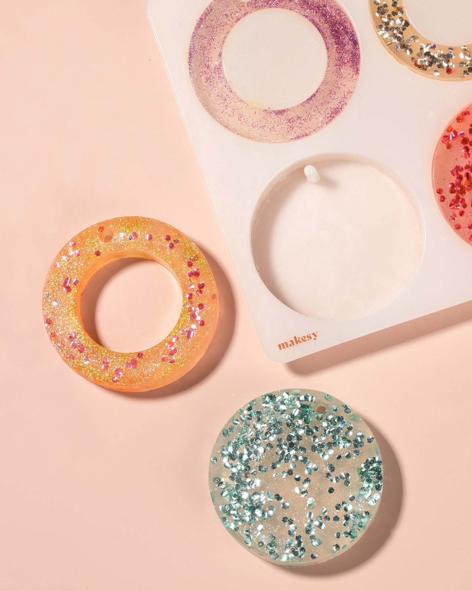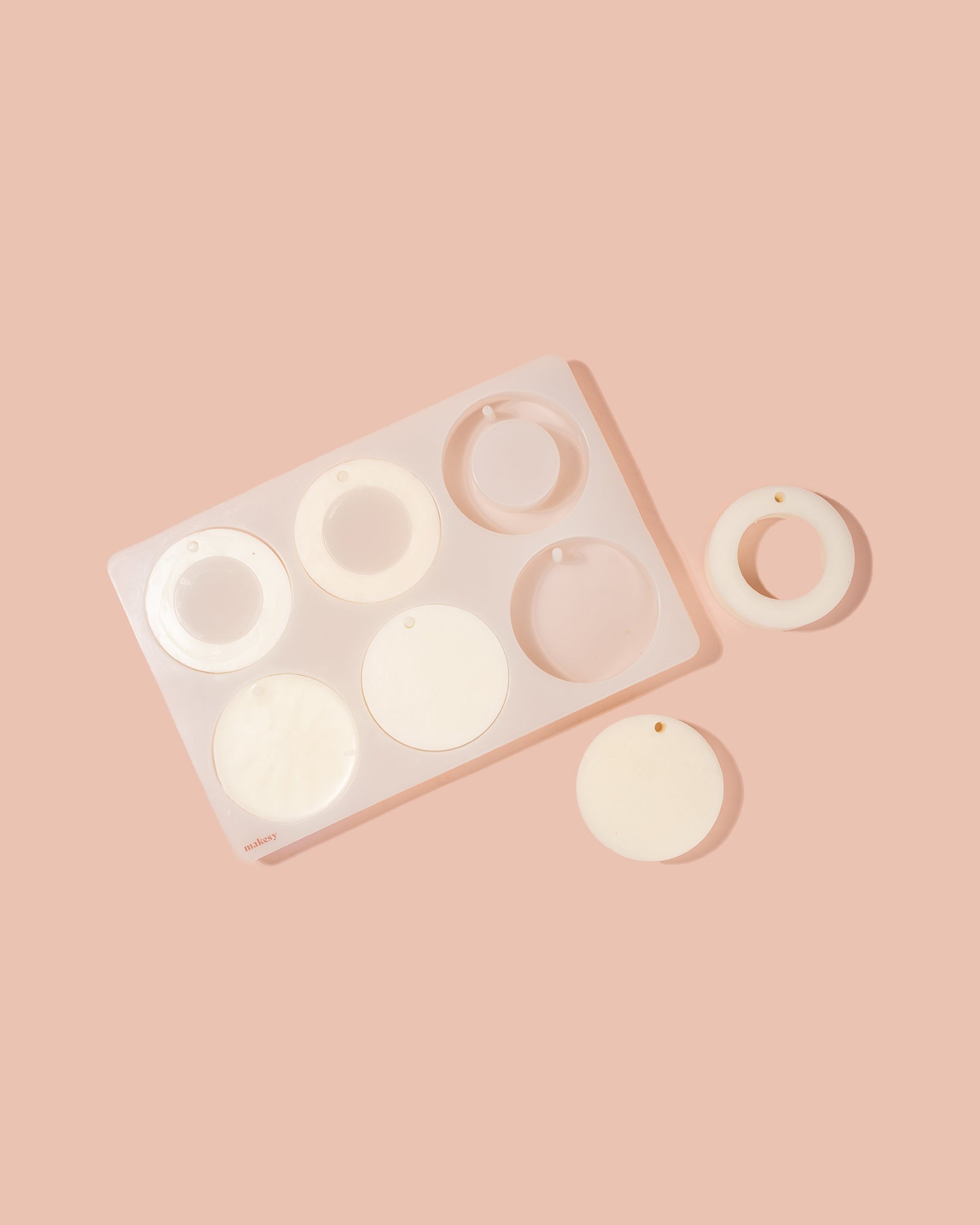 Make disc or ring-shaped tarts, melts, or soaps with built-in hanging options. Flexible, easy-to-use material withstands high temperatures for reliable results.