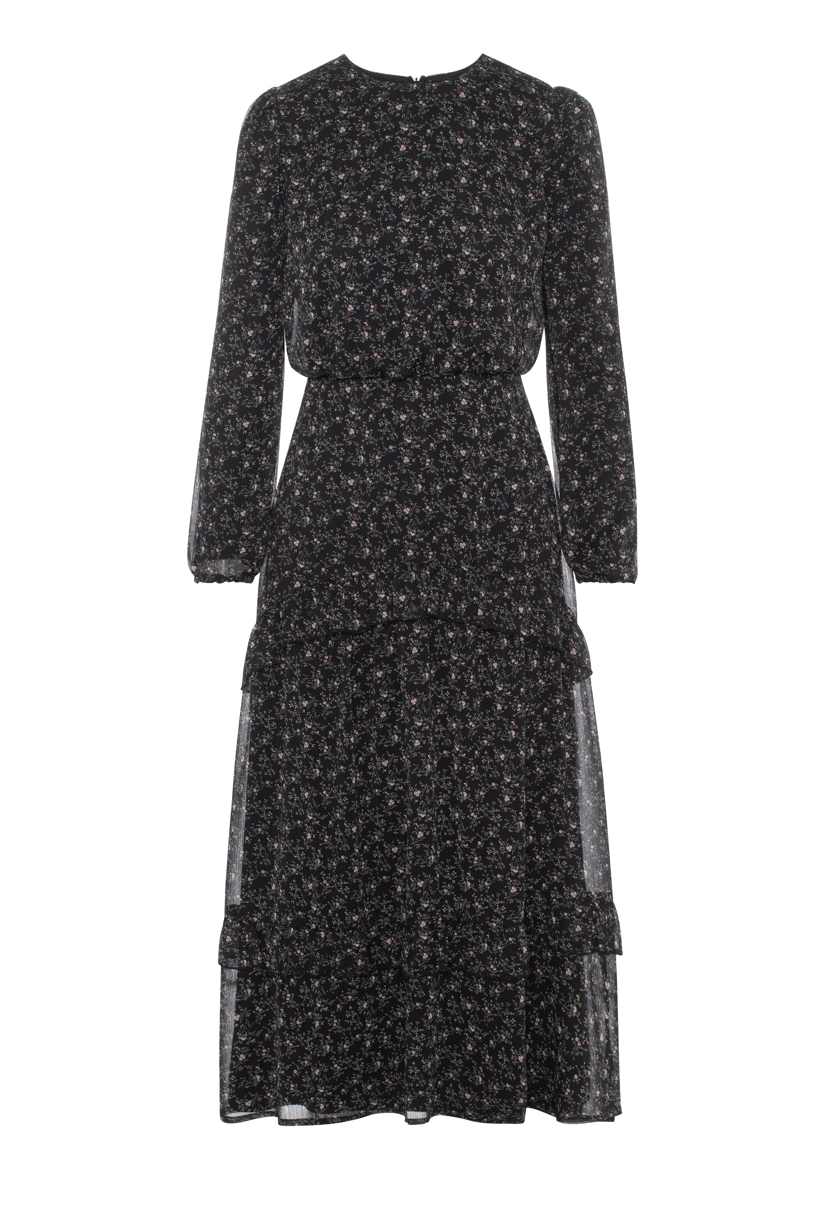 Ruffle Tiered Dress ‐ Black Floral / MT