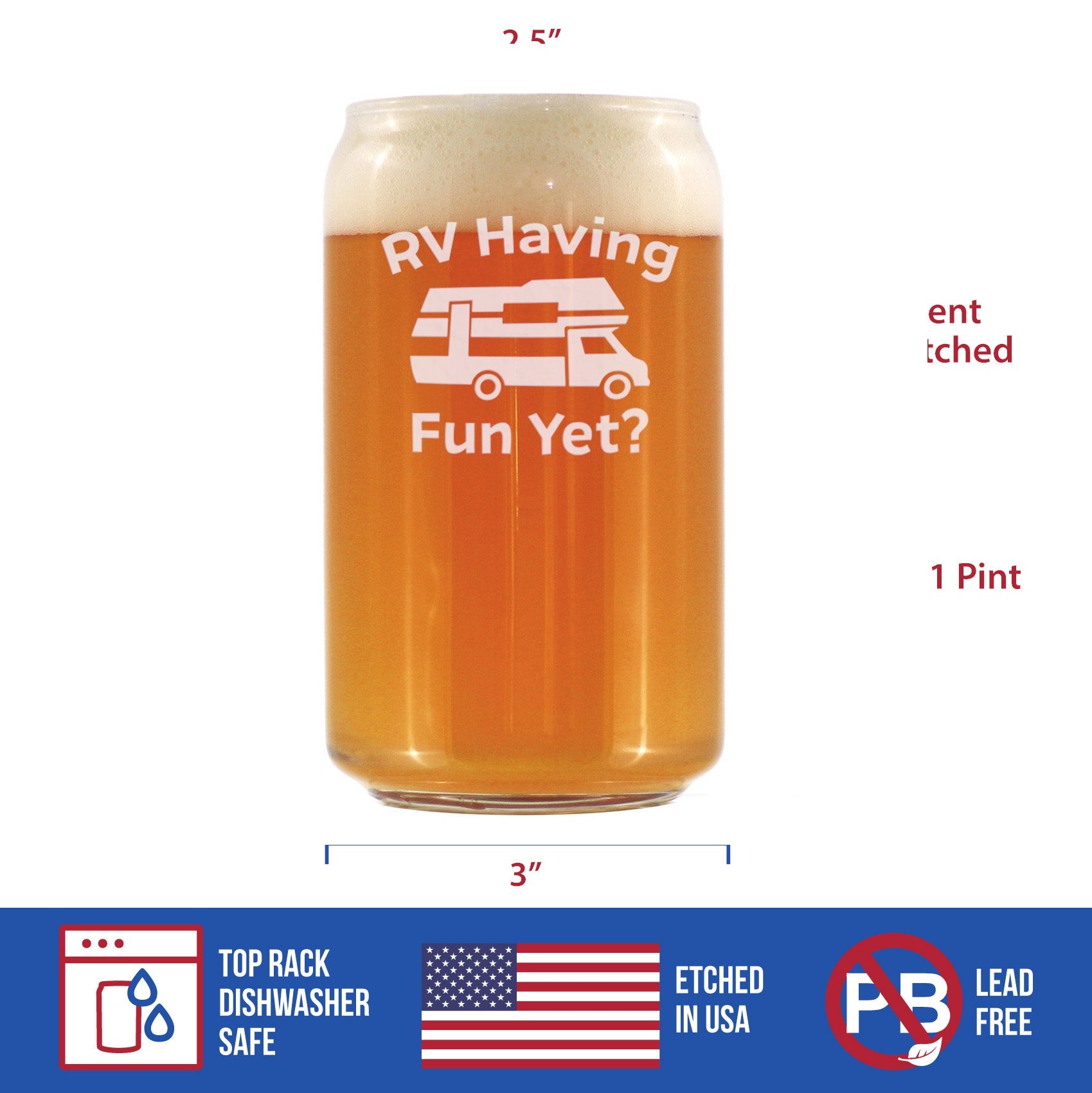RV Having Fun Yet - Beer Can Pint Glass - Fun RV Gifts for Men & Women Who Love Drinking & Camping - 16 oz