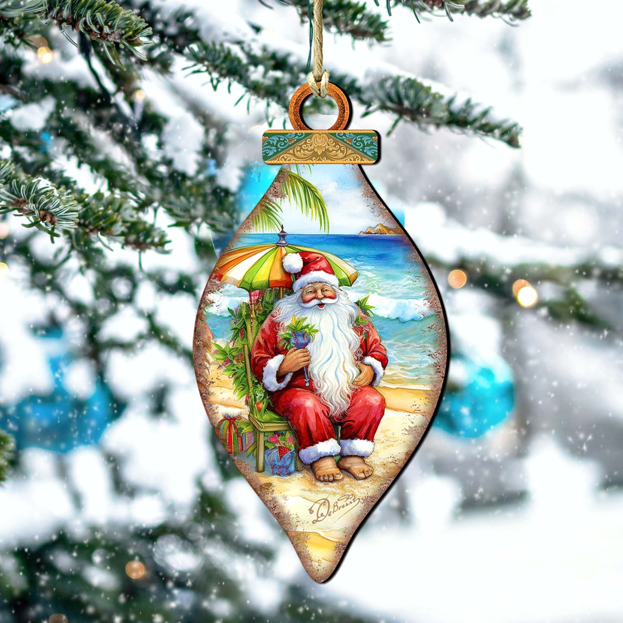 Santa on the Beach Decorations Santa's Beach Break Wooden Ornaments by G.Debrekht Coastal Holiday Decor - 8688182
