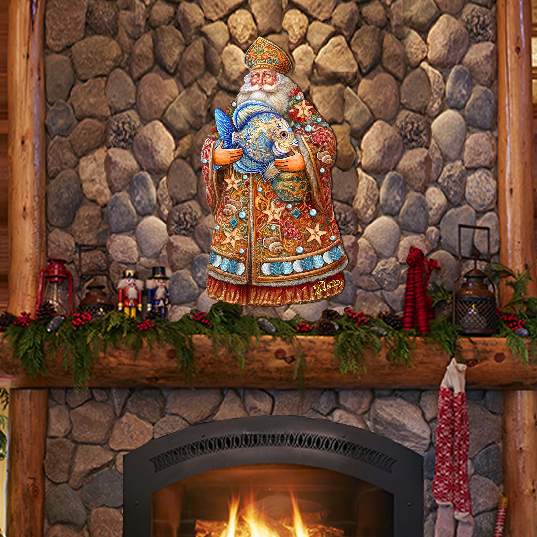 Santa with Fish Holiday Door Decor by G. Debrekht - Christmas Santa Snowman Decor - 8691411H