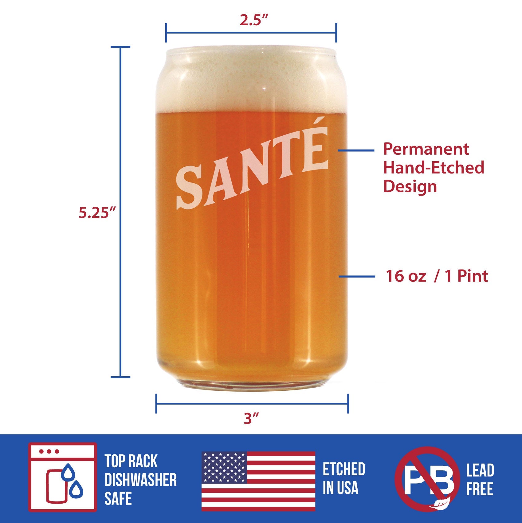Sante - French Cheers - Fun Beer Can Pint Glasses - Cute France Themed Gifts or Party Decor for Men and Women - 16 oz