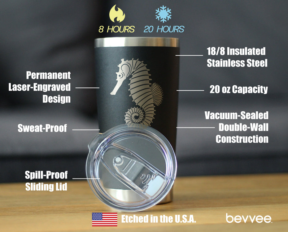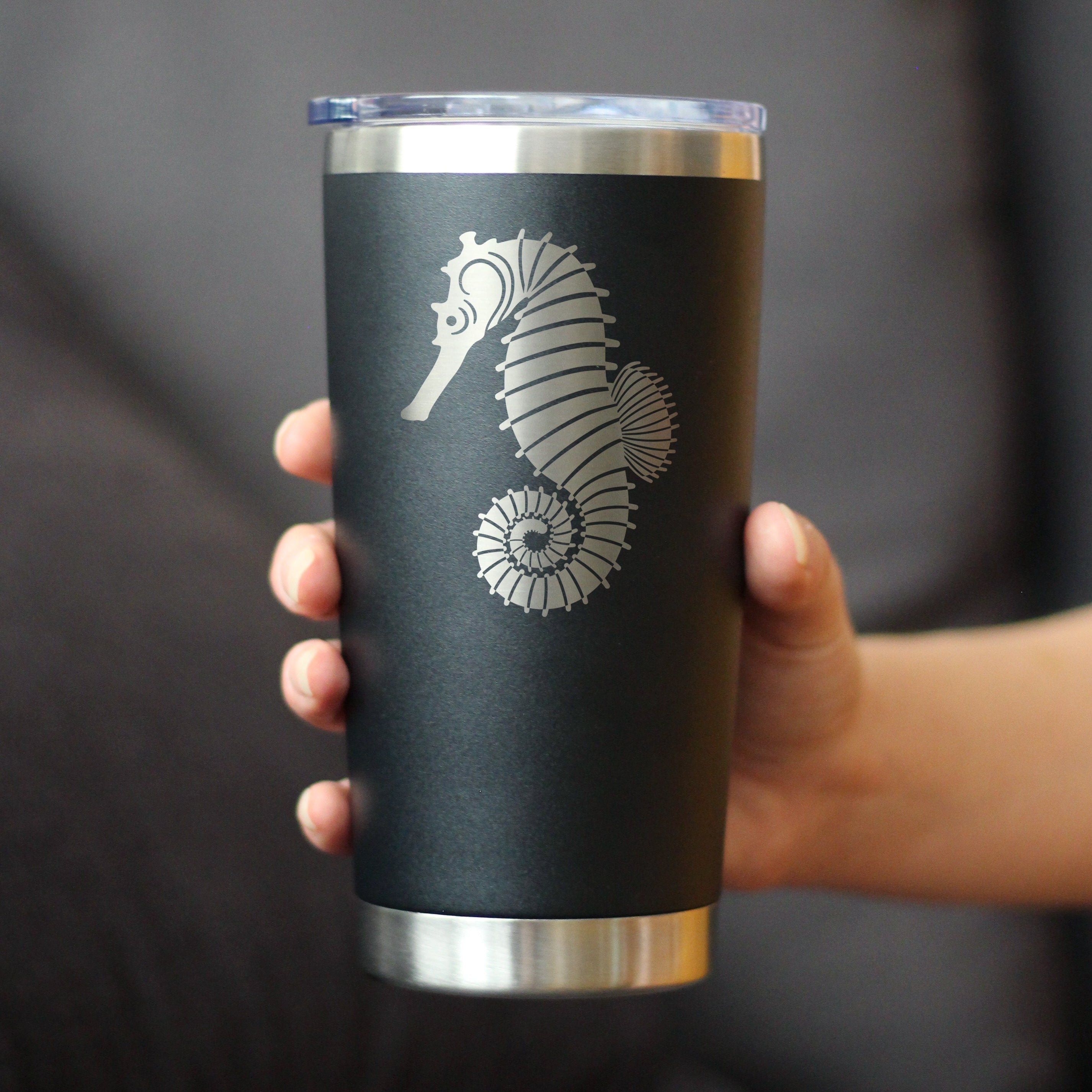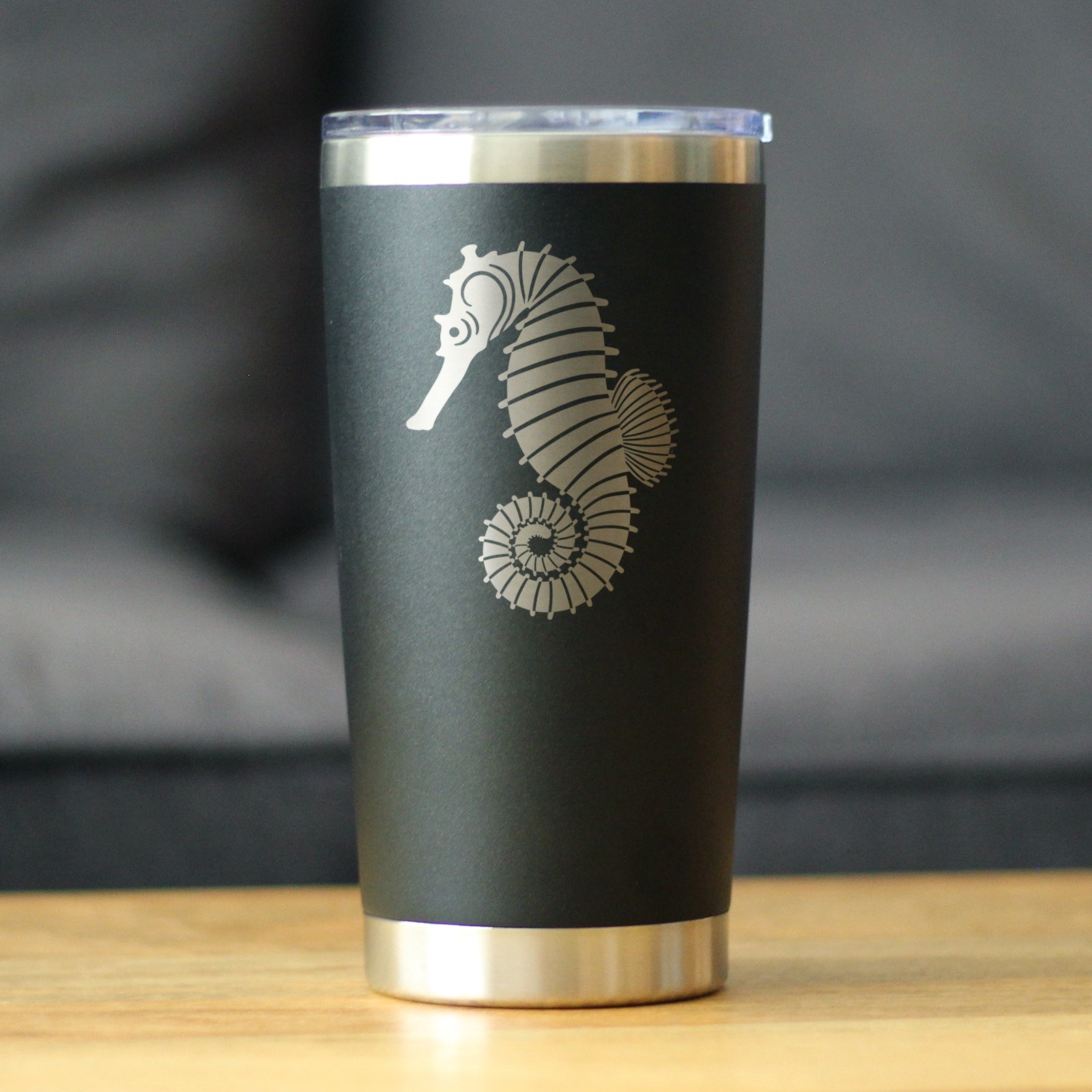 Seahorse - Cute Nautical Theme Gifts for Beach House - 20 oz Coffee Tumbler ‐ Black