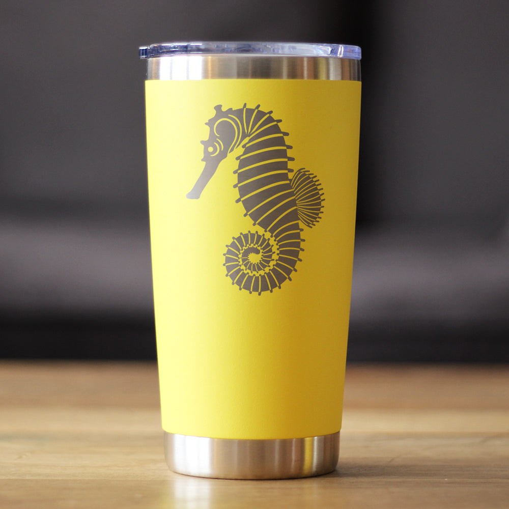 Seahorse - Cute Nautical Theme Gifts for Beach House - 20 oz Coffee Tumbler ‐ Yellow