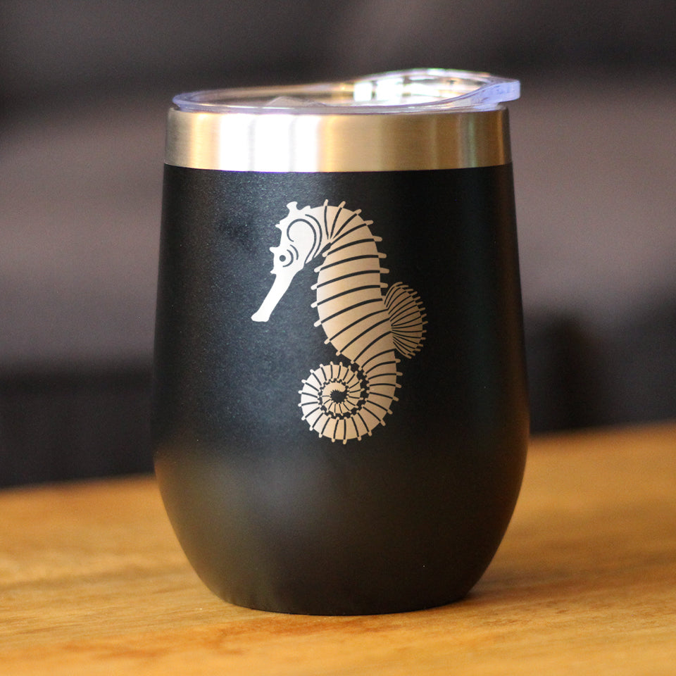 Seahorse - Cute Nautical Theme Gifts for Beach House - Wine Tumbler ‐ Black