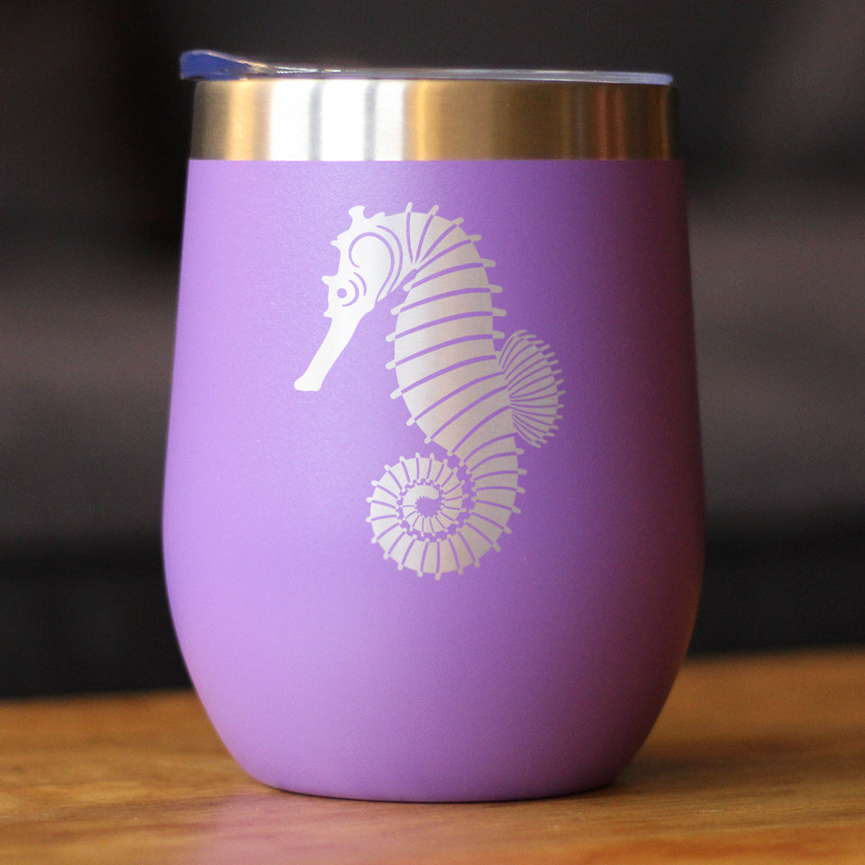 Seahorse - Cute Nautical Theme Gifts for Beach House - Wine Tumbler ‐ Purple