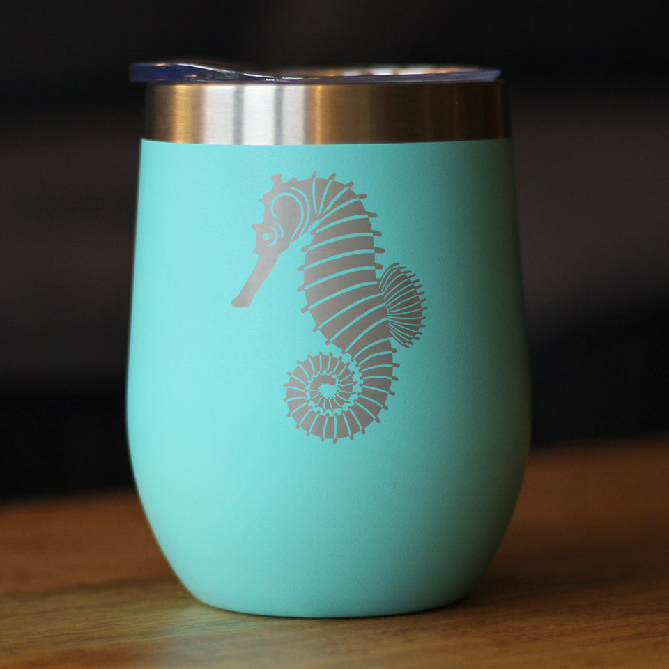 Seahorse - Cute Nautical Theme Gifts for Beach House - Wine Tumbler ‐ Teal