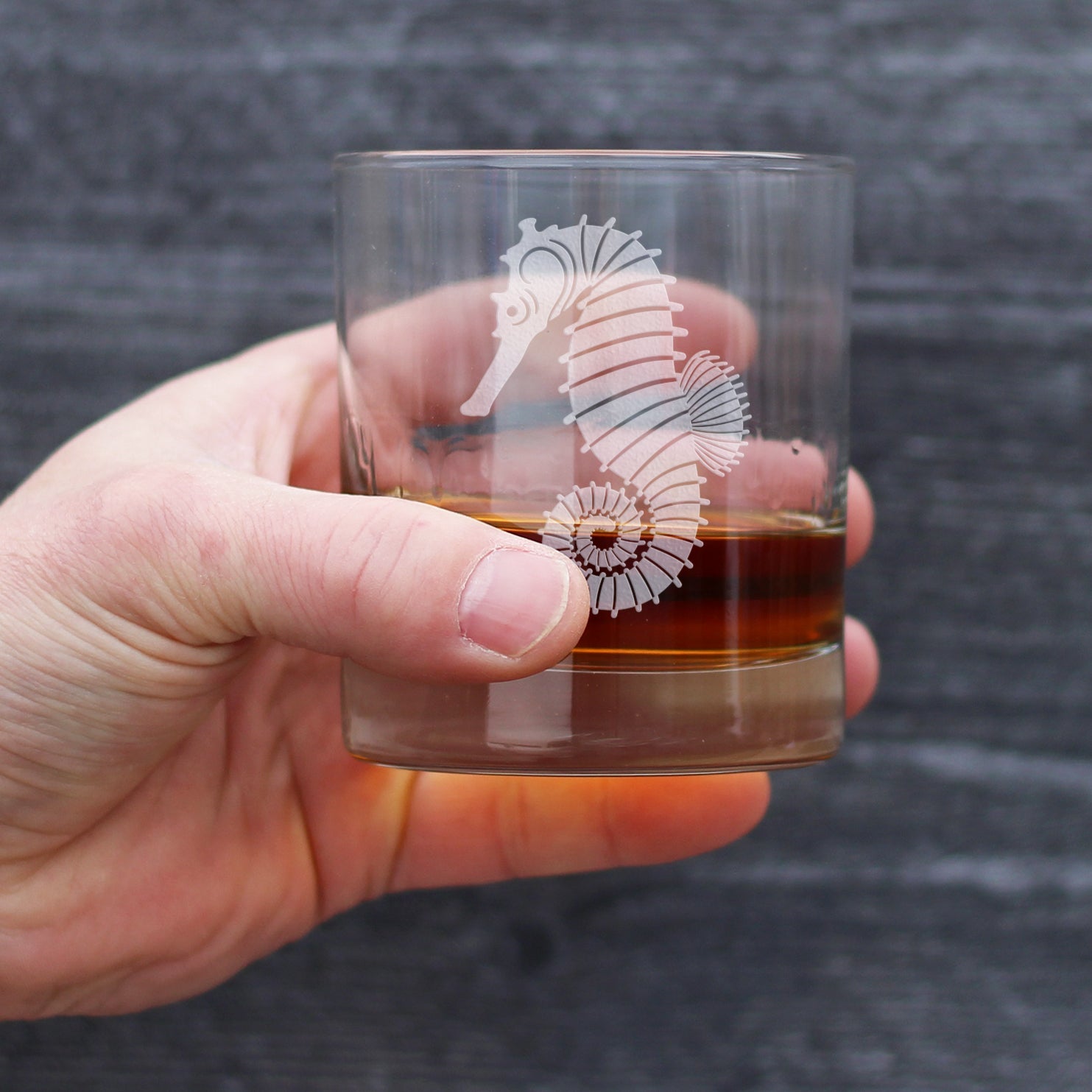 Seahorse Rocks Glass - Unique Beachy Summer Gifts and Beach House Decor - 10.25 Oz Glasses