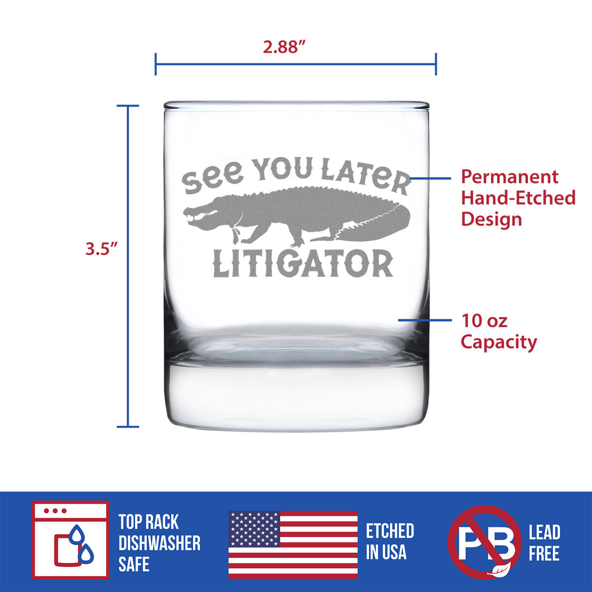 See You Later Litigator - Whiskey Rocks Glass - Funny Lawyer Gifts for Law School Graduates - 10.25 Oz Glass