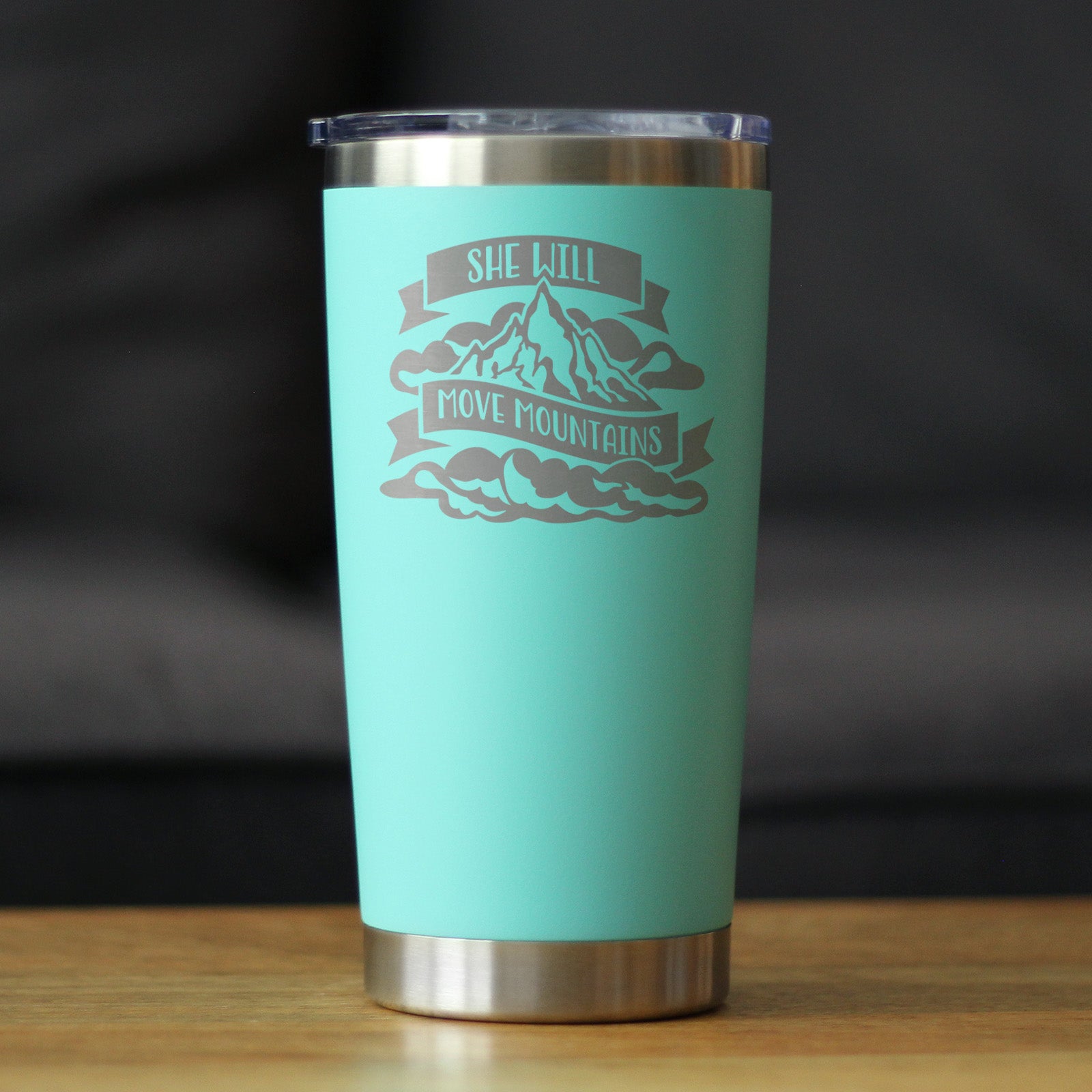 She Will Move Mountains - Insulated Coffee Tumbler Cup with Sliding Lid - Stainless Steel Insulated Mug - Motivational Inspirational Gifts for Women