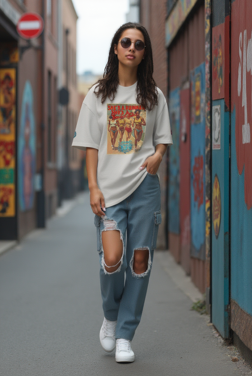 She's a Runner, She's a TrackStar Oversized Faded T-shirt ‐ Faded Bone / 3XL