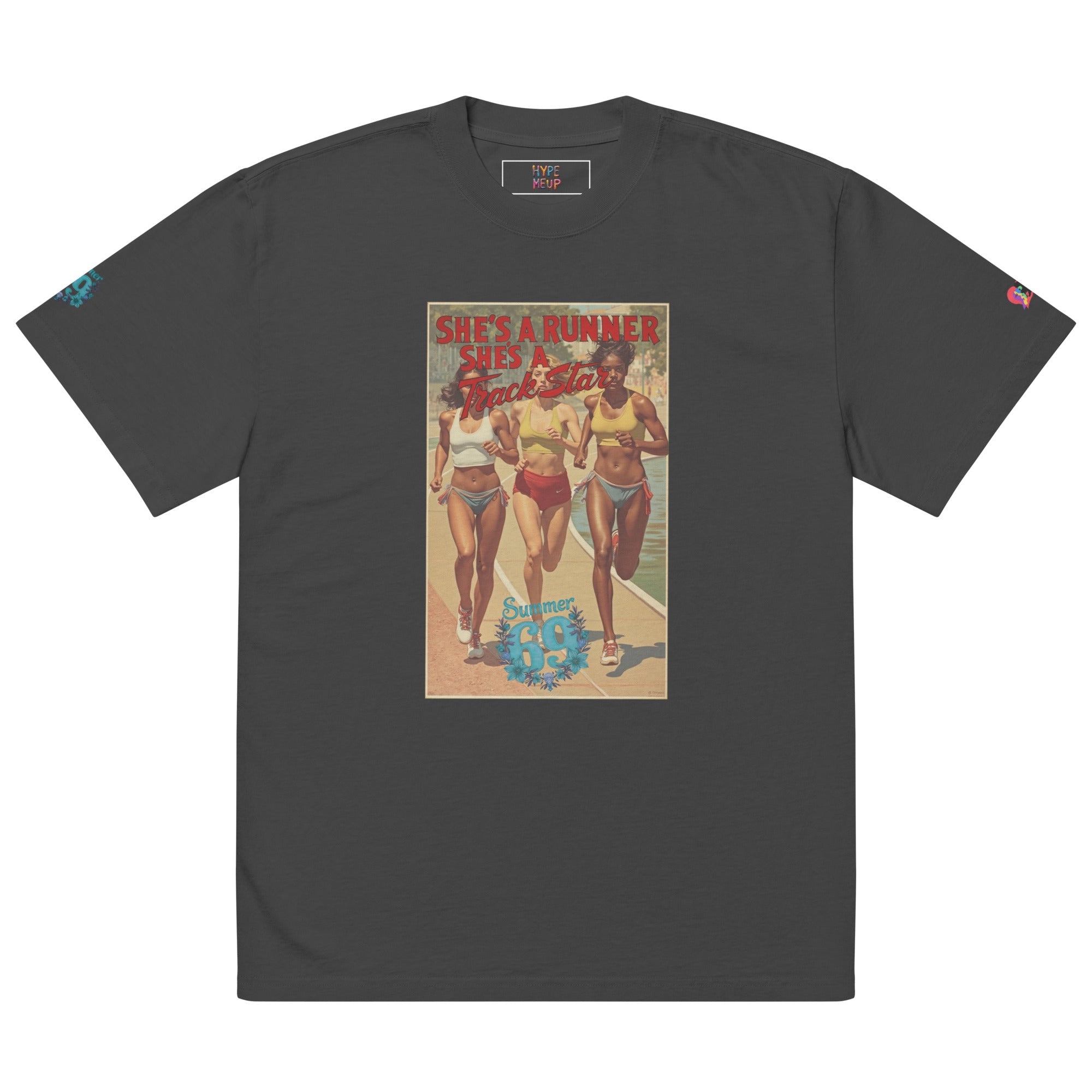 She's a Runner, She's a TrackStar Oversized Faded T-shirt ‐ Faded Black / L