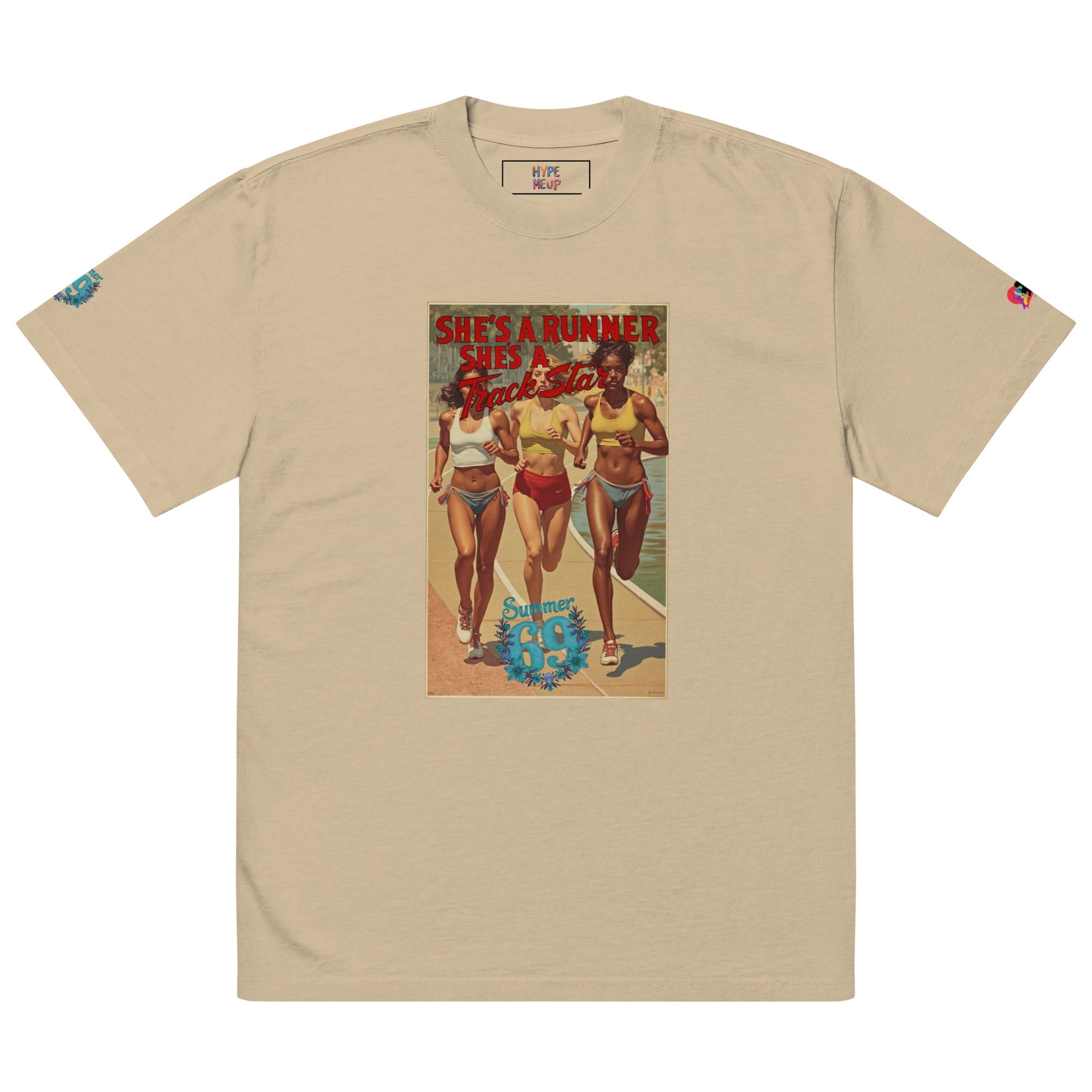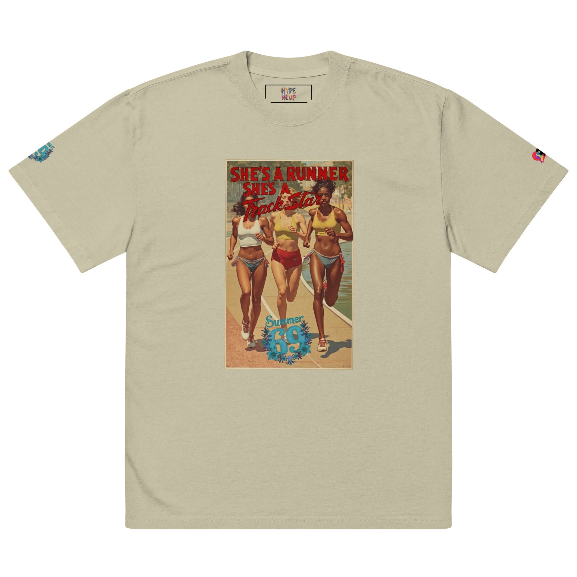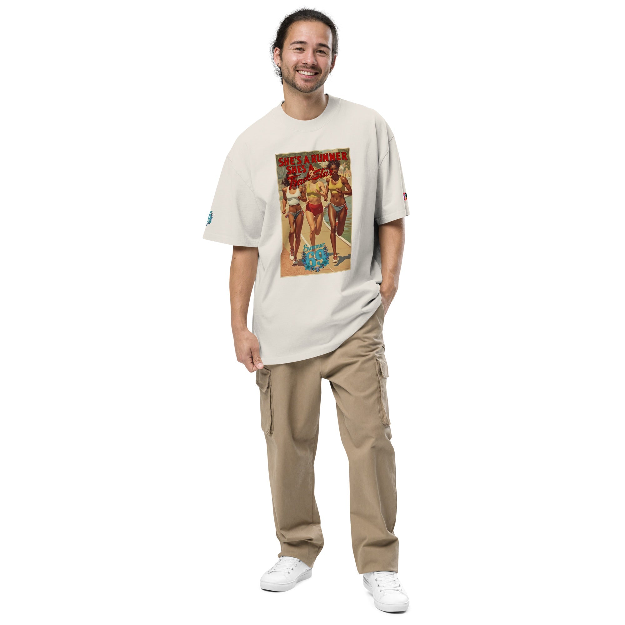 She's a Runner, She's a TrackStar Oversized Faded T-shirt ‐ Faded Bone / 2XL