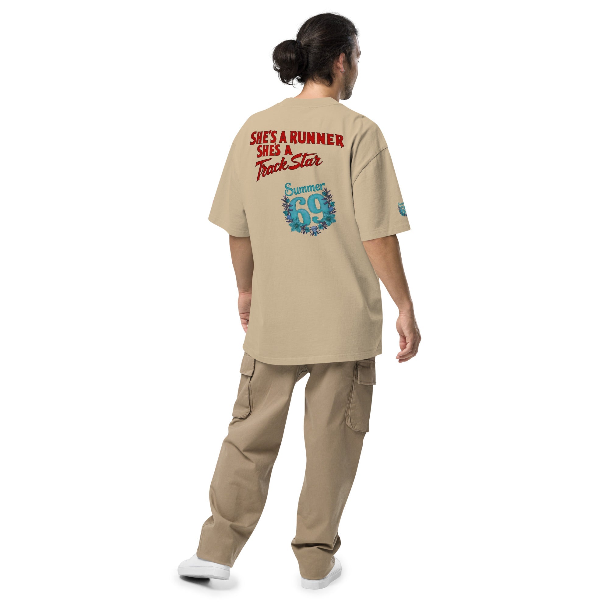 She's a Runner, She's a TrackStar Oversized Faded T-shirt ‐ Faded Khaki / L