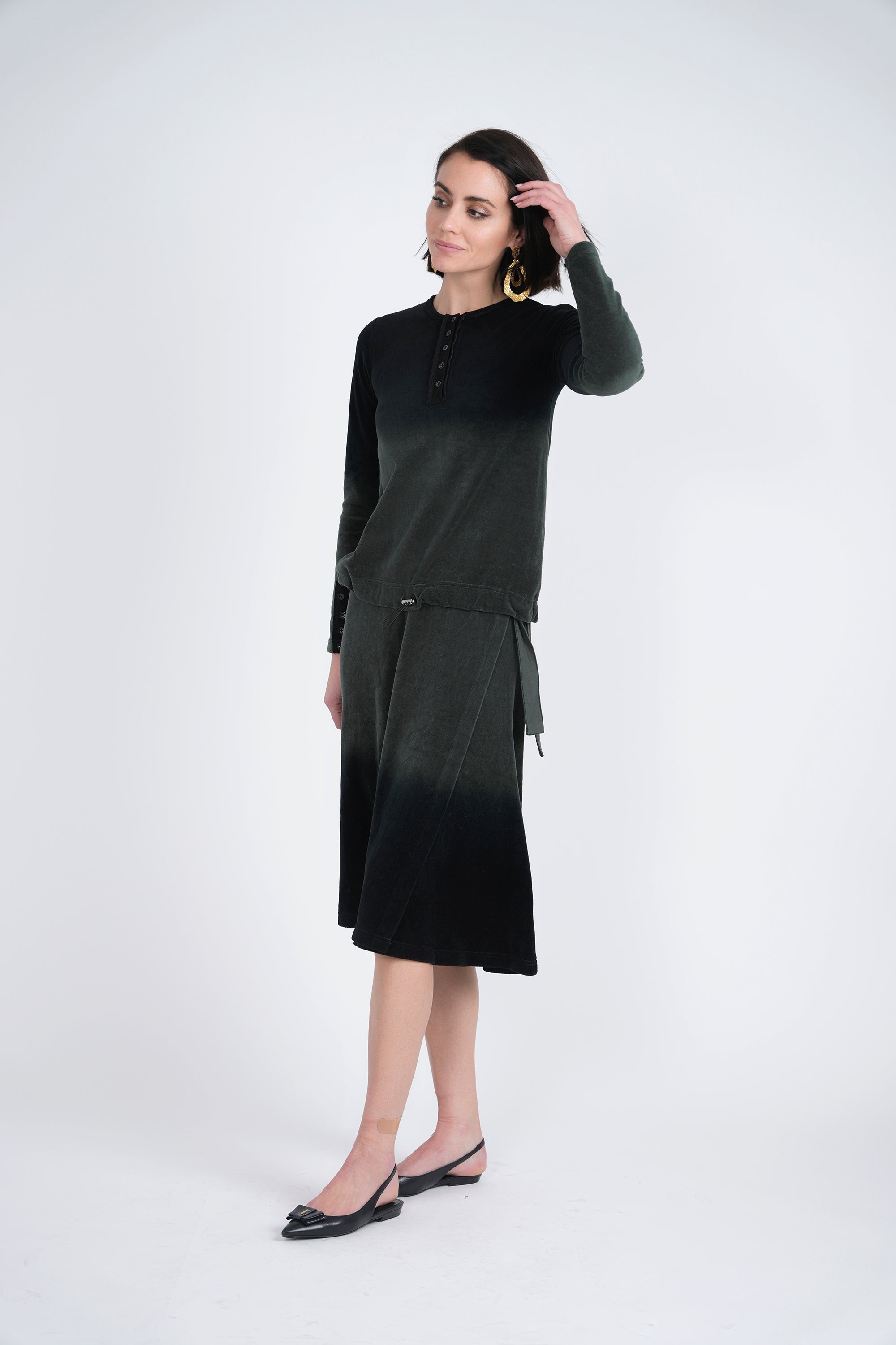 Short Wrap Velour Skirt ‐ Dark Olive/Black / S