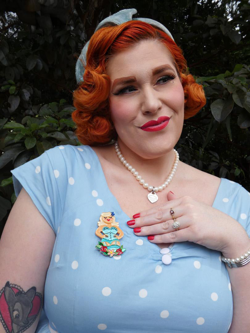 Channel your inner vintage vixen with this showstopping pinup brooch by Asia Ellington, brought to life by Lipstick & Chrome!