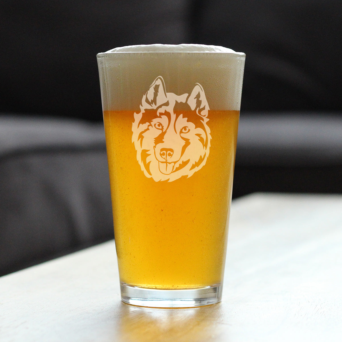 Siberian Husky Face Pint Glass for Beer - Unique Dog Themed Decor and Gifts for Moms & Dads of Huskies - 16 Oz