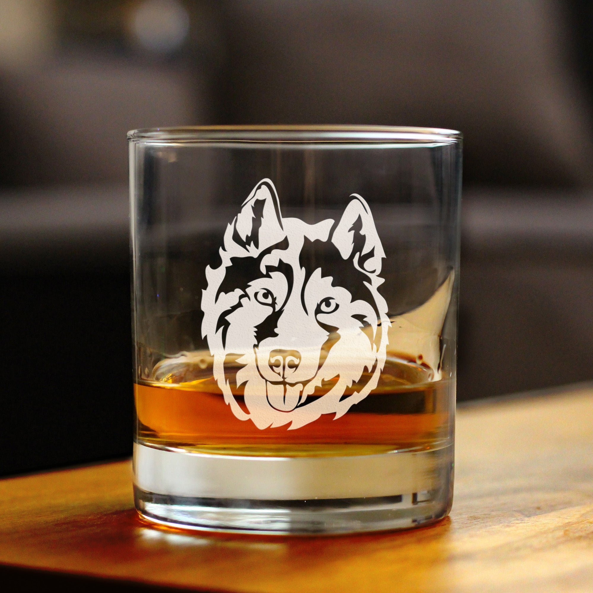 Siberian Husky Face Whiskey Rocks Glass - Unique Dog Themed Decor and Gifts for Moms & Dads of Huskies - 10.25 Oz