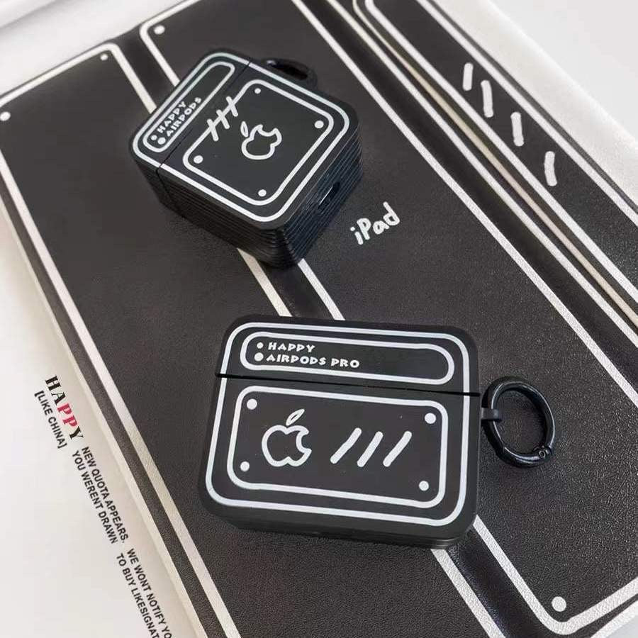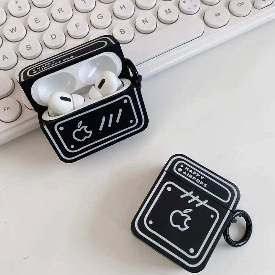 Simple Cute Case For AirPods with Keychain | ZAKAPOP ‐ Black frosted apple label / AirPods Pro