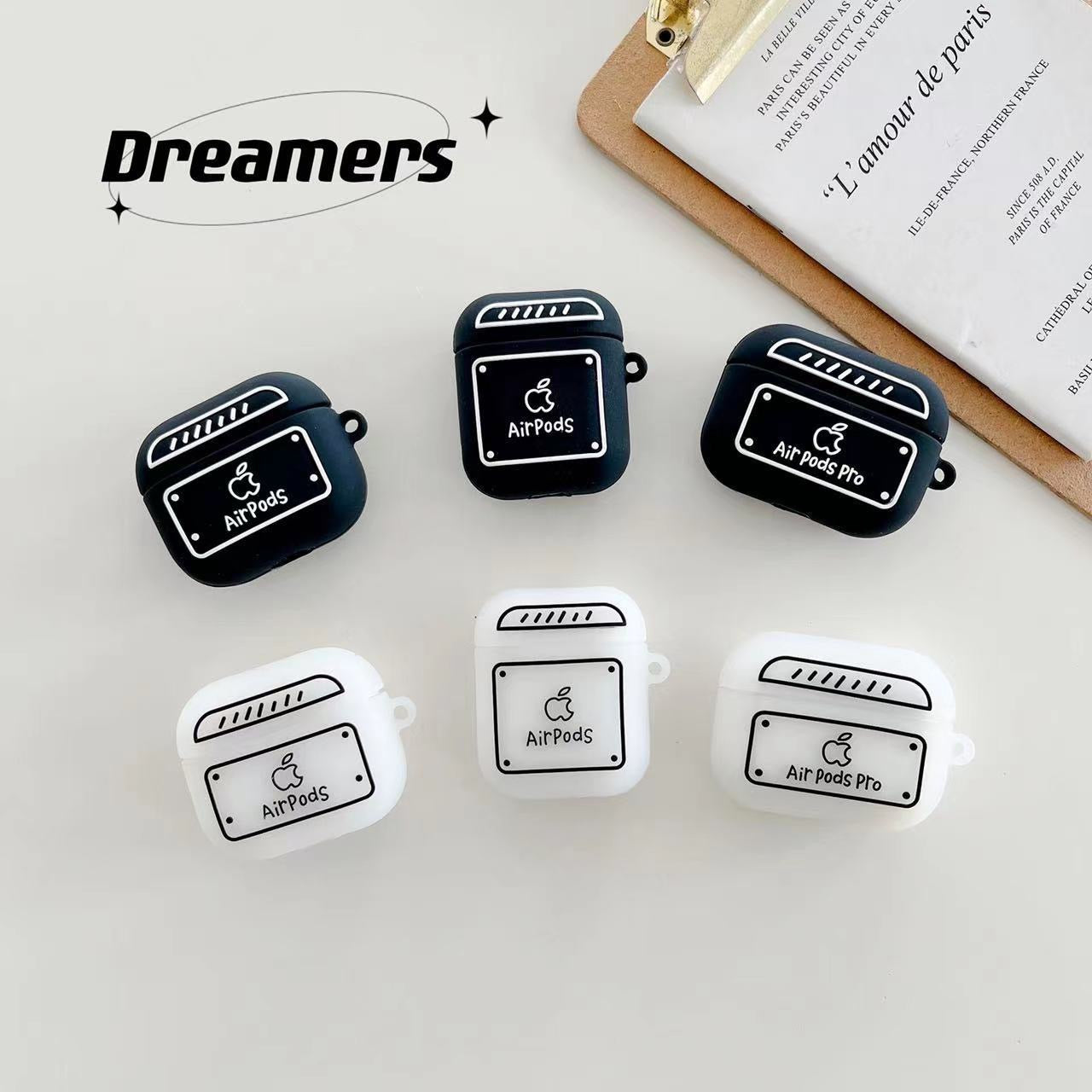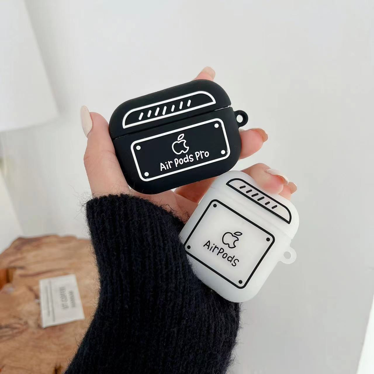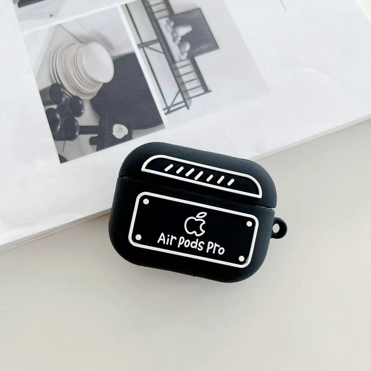 Simple Cute Case For AirPods with Keychain | ZAKAPOP ‐ Black rounded corners / AirPods Pro