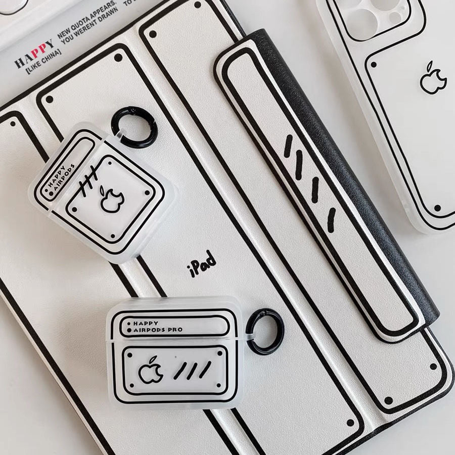 Simple Cute Case For AirPods with Keychain | ZAKAPOP ‐ Black frosted apple label / AirPods 3