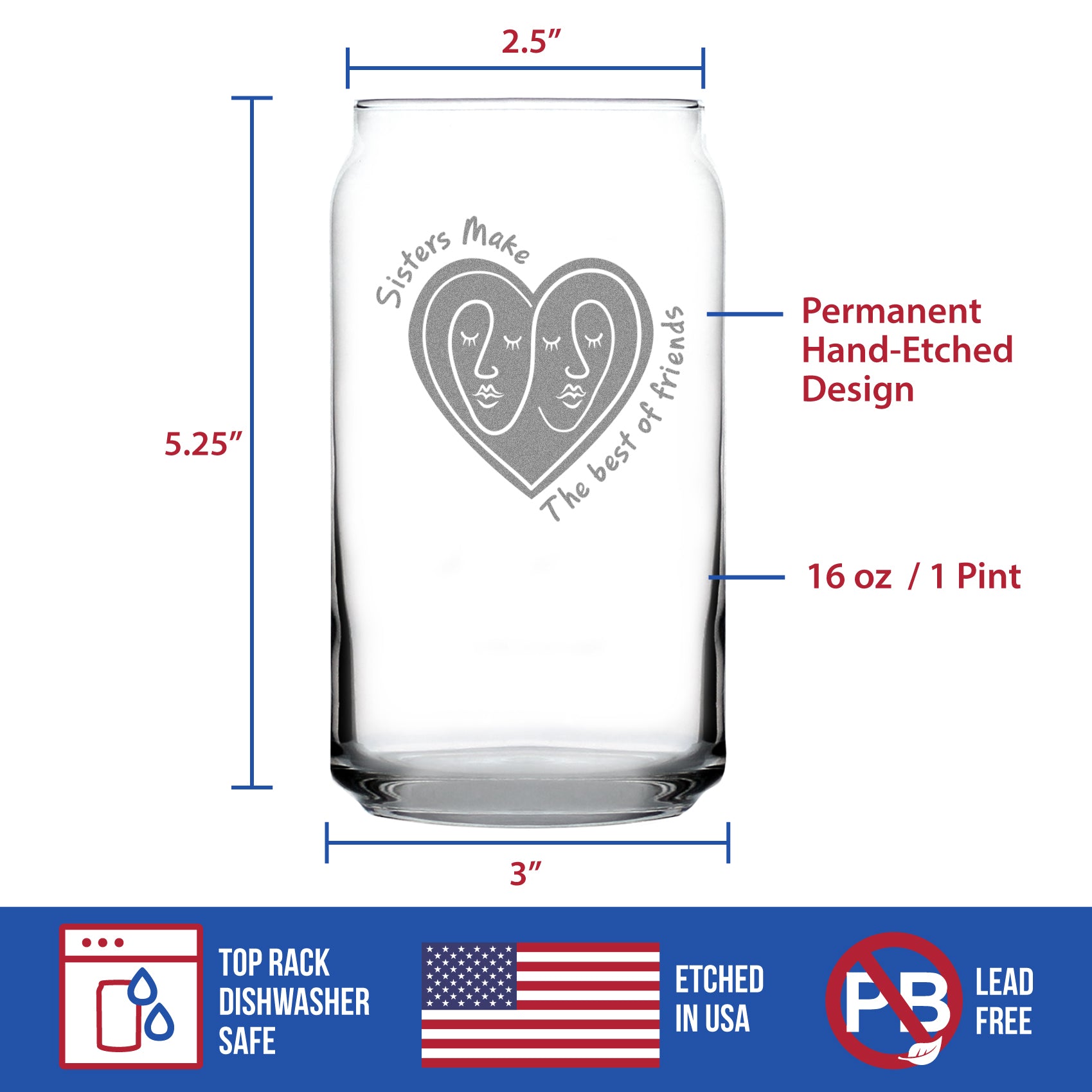 Sisters Make The Best Friends - Beer Can Pint Glass - Unique Sister Gifts for Women - 16 oz Glasses