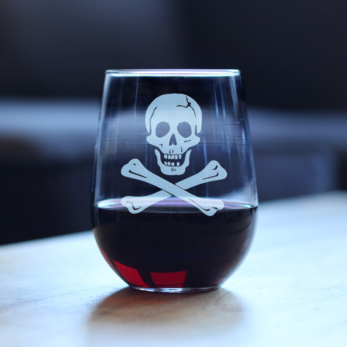 Skull and Crossbones Stemless Wine Glass - Skull Decor and Jolly Roger Flag Gifts - Large 17 Oz Glasses