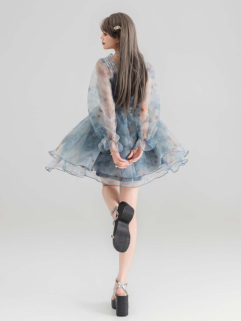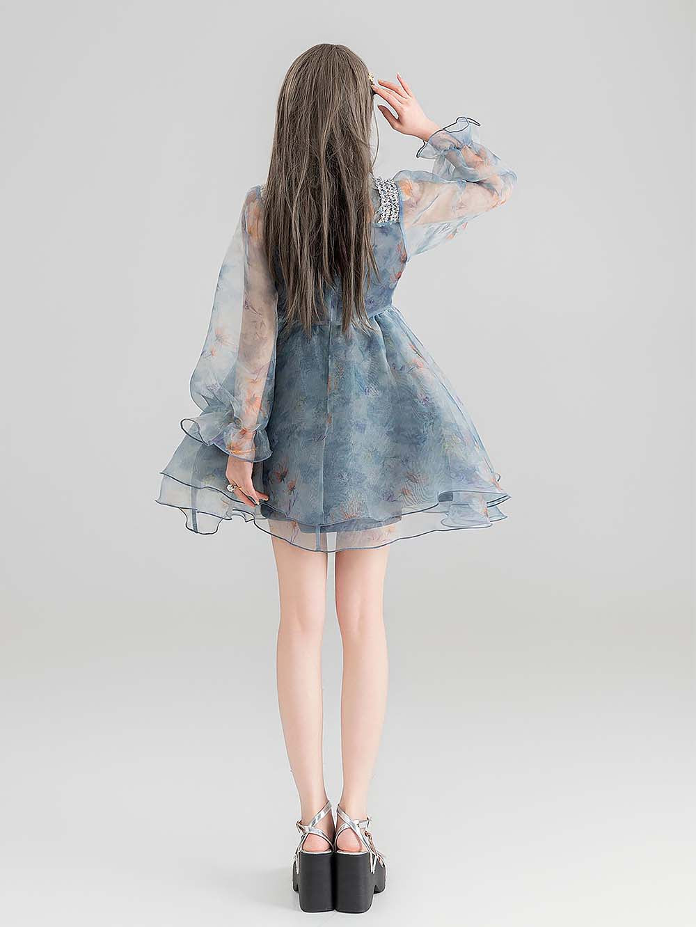 Smoky Blue Floral Princess Dress | ZAKAPOP