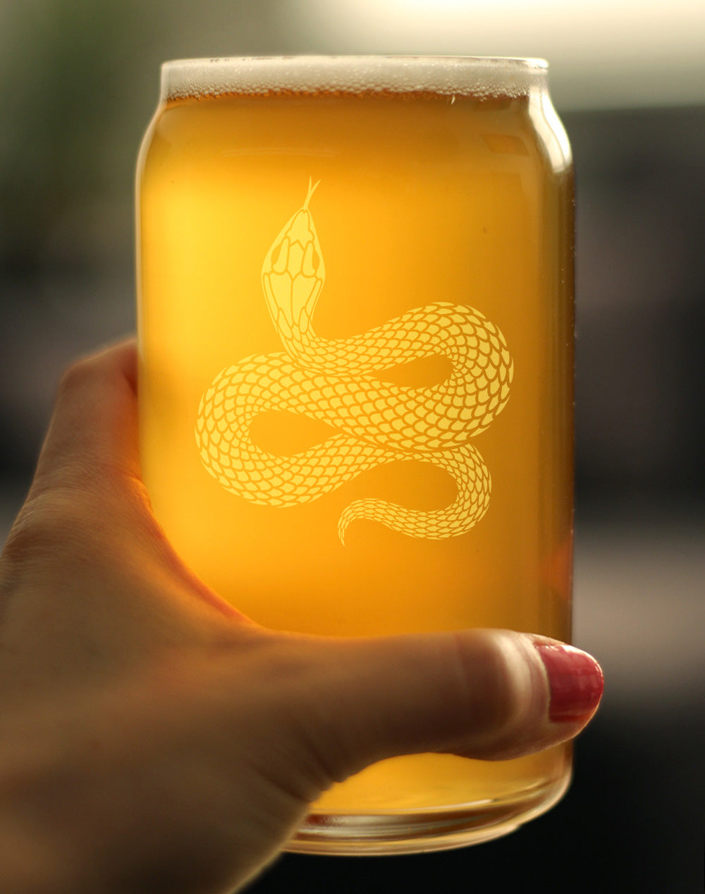 Snake Engraved Beer Can Glass Reptile Decor and Gifts for Snake Lovers Beer Can Shaped Pint Glass - 16oz
