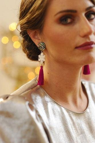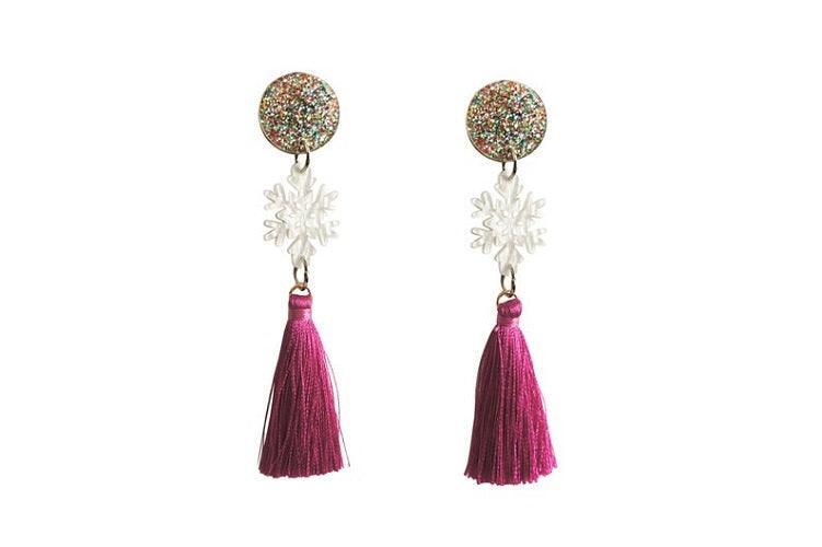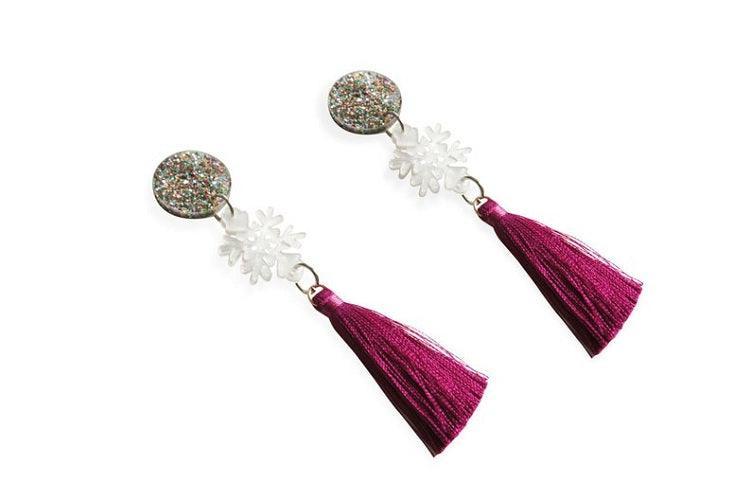 Handmade Materials methacrylate, beads, brass Snow Star EarringsCharacteristics:-Size: 7.5 x 3 cm-Glitter methacrylate-Pearl methacrylate-Thread tassel-Earring closure with stick with pressure. Stainless steel NOTE:Laliblue items are pre-order and will be included with our next order from Laliblue - generally approximately 3 weeks. Any questions regarding estimated delivery time, please contact us.