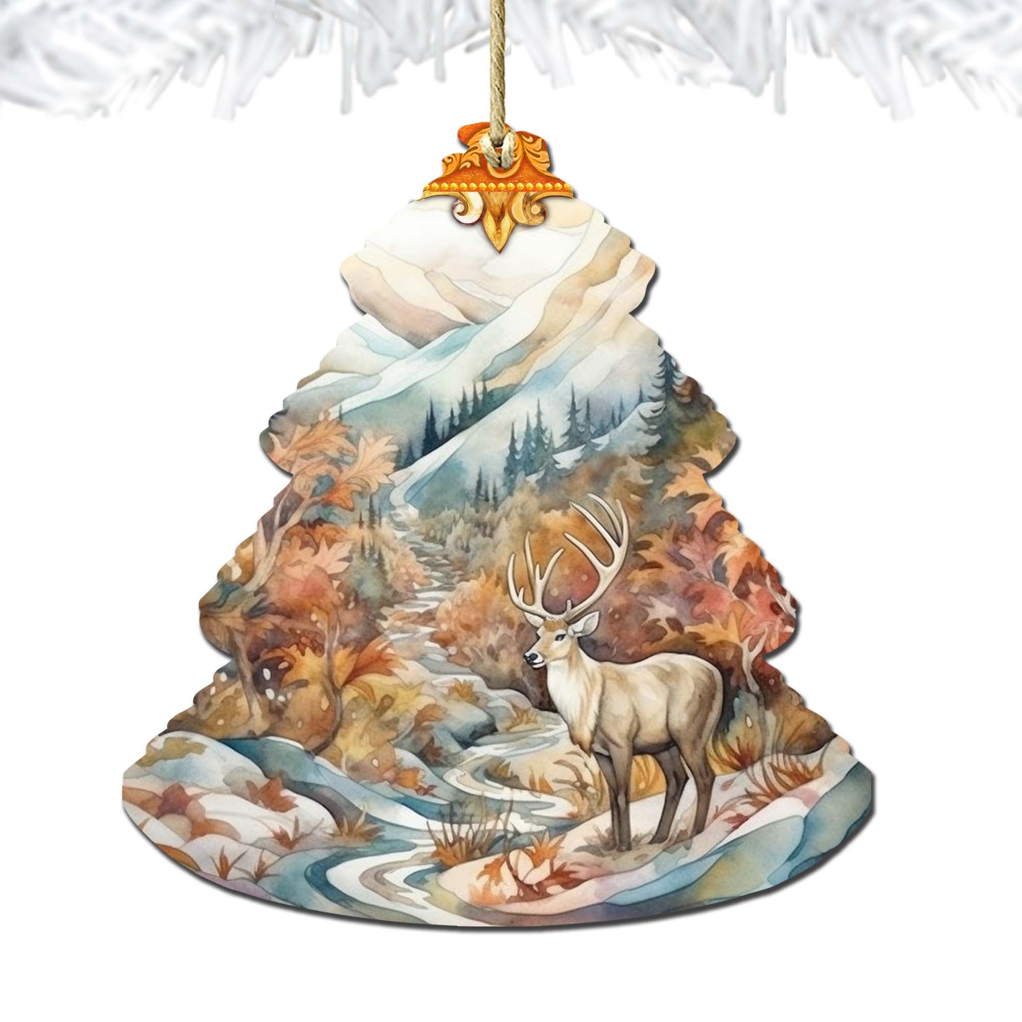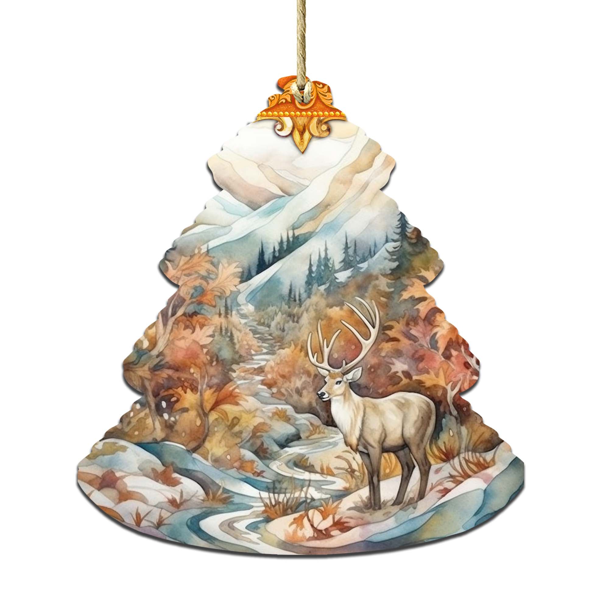 Snowy Summit Elk Tree Wooden Ornaments by G.Debrekht - Wildlife Holiday Decor - 870005 ‐ SINGLE piece