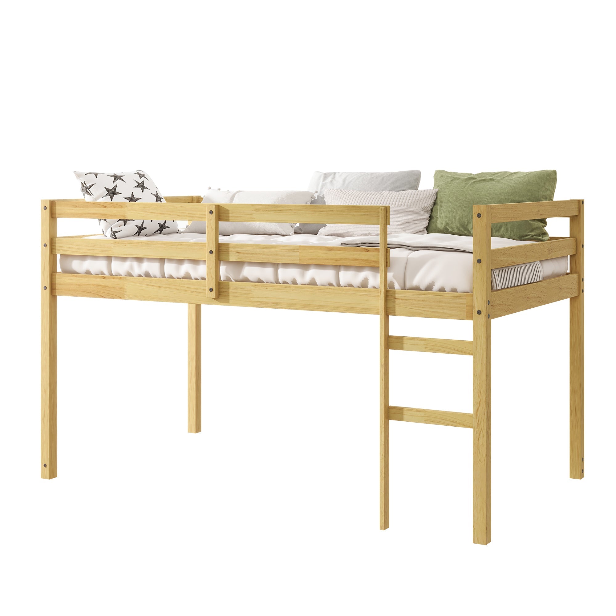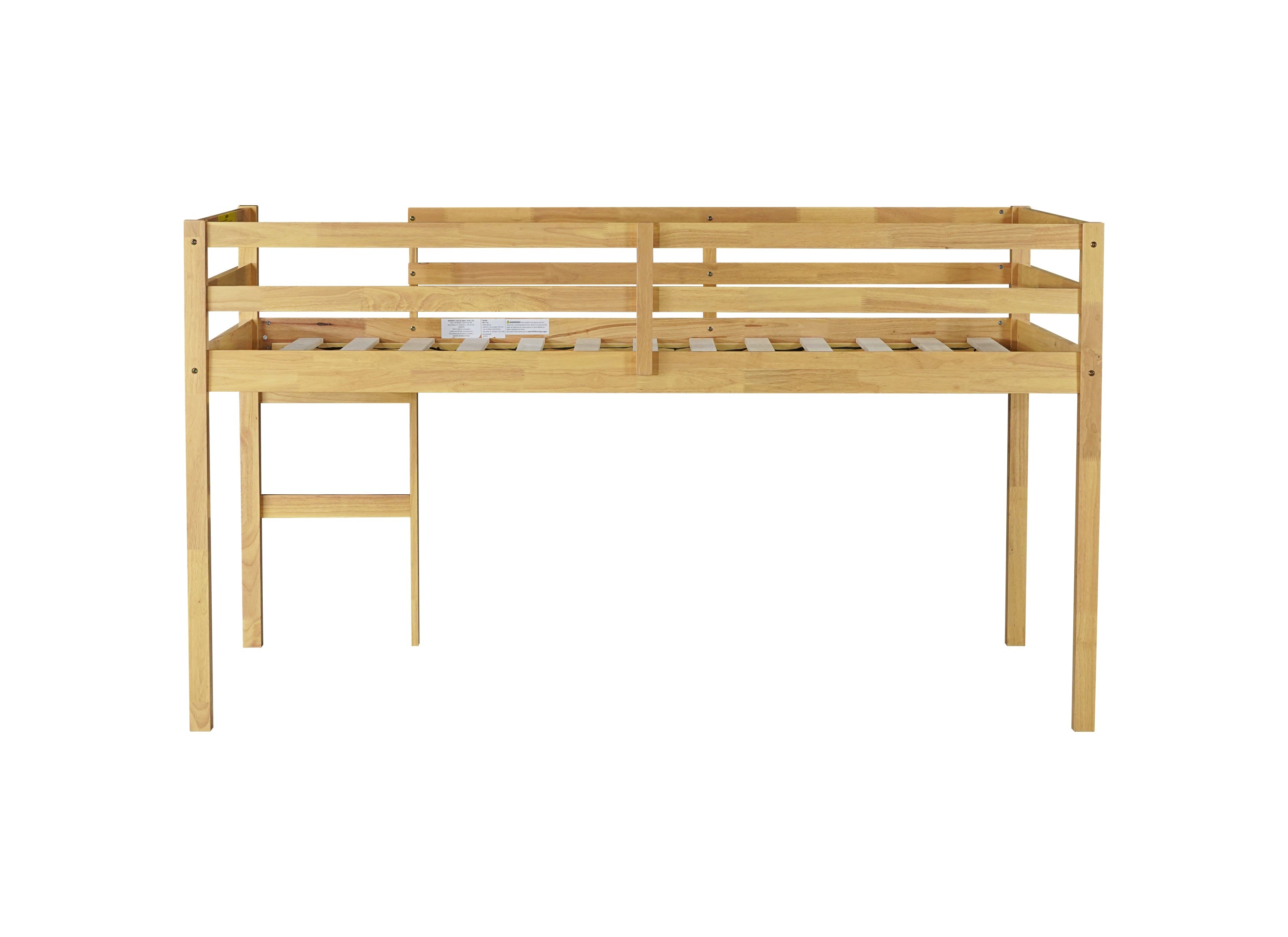 Solid Wooden, Rubber Wooden Twin Loft Bed with Ladder, Bed Platform of Strengthened Slats, Natural ‐ Default