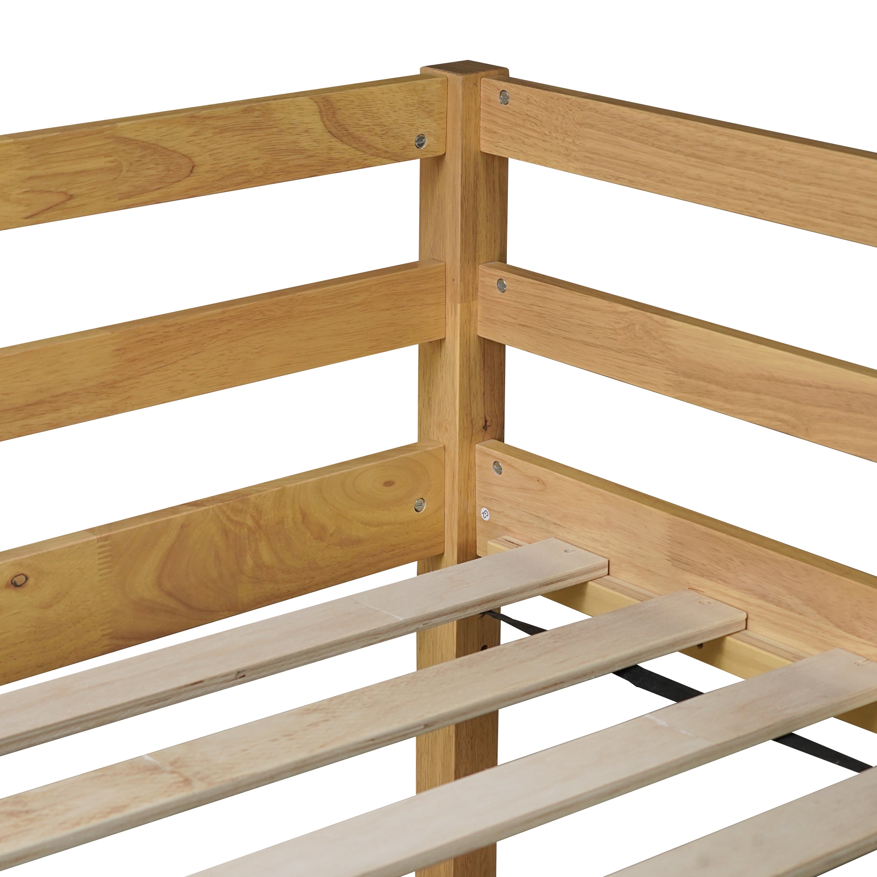 - #3 [Safety and Quality Guaranteed]This loft bed is mainly crafted from premium rubber wood and premium composite wood, providing lasting sturdiness and durability. The loft bed is constructed with firmly secured structure, with a bed platform supported by 13 poplar plywood slats , forging strong stability .The high guard rails surrounding the loft bed will further provide an extra protection.