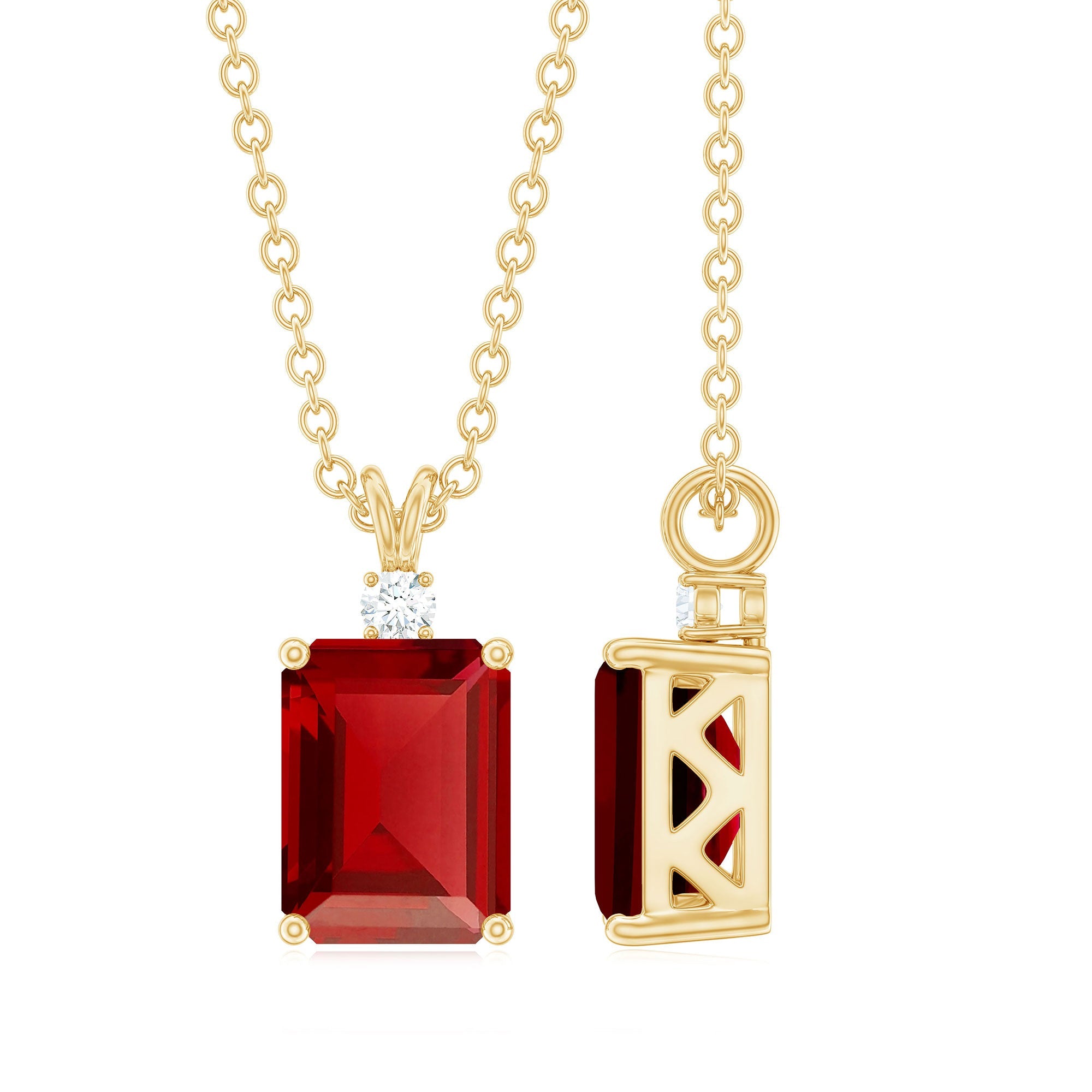 Solitaire Lab Created Ruby Emerald Cut Necklace with Silver Chain ‐ AAAA / 14K Yellow Gold Plated Silver