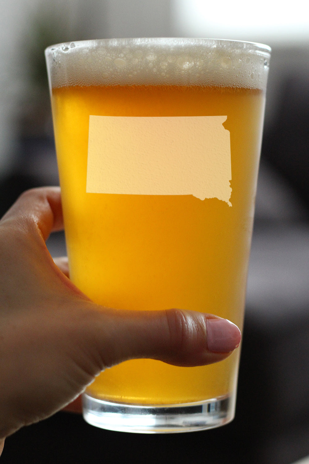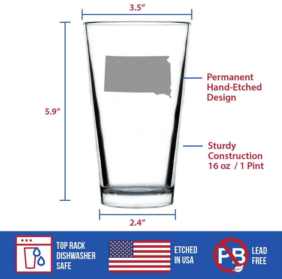 South Dakota State Outline Pint Glass for Beer - State Themed Drinking Decor and Gifts for South Dakotan Women & Men - 16 Oz Glasses