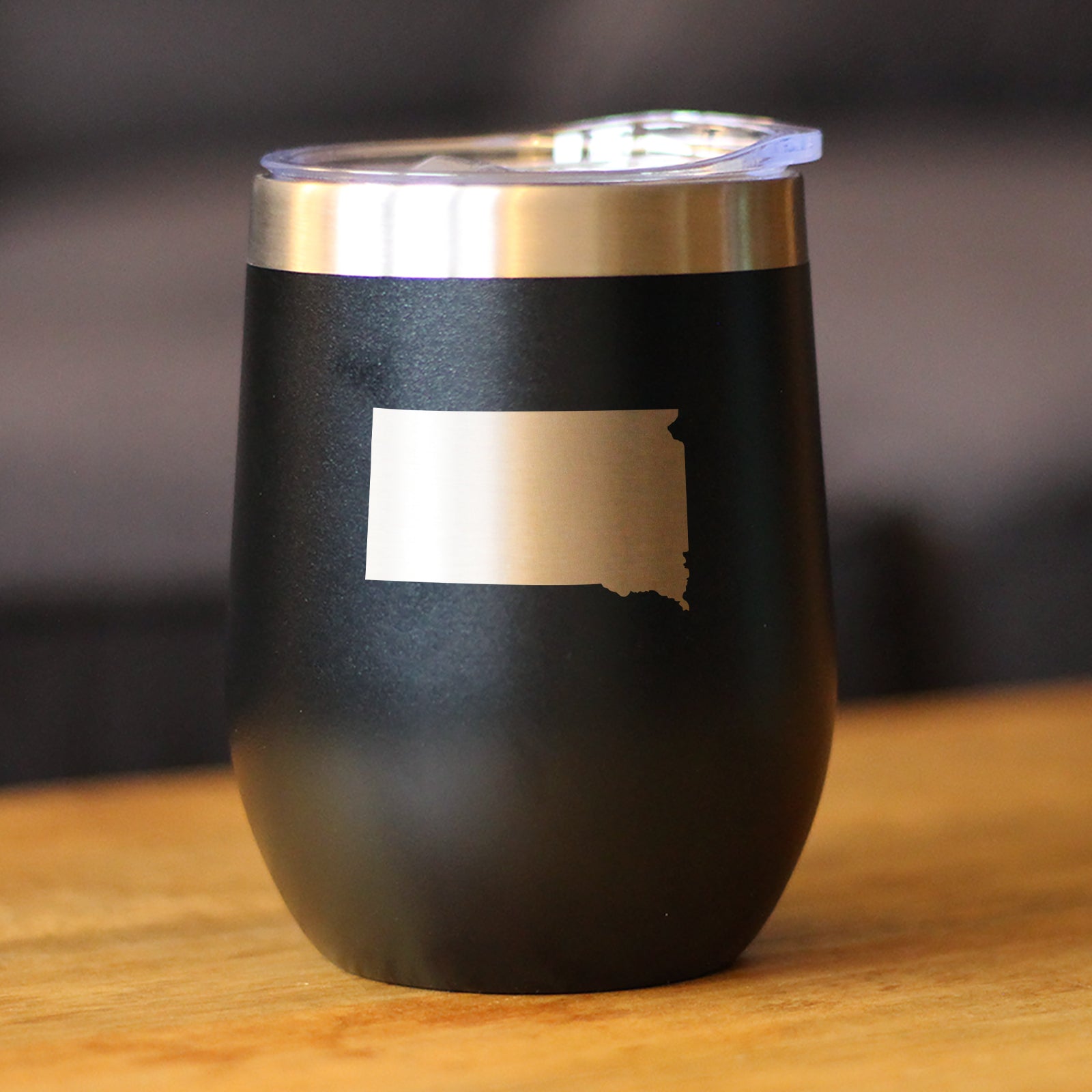 South Dakota State Outline - Wine Tumbler ‐ Black