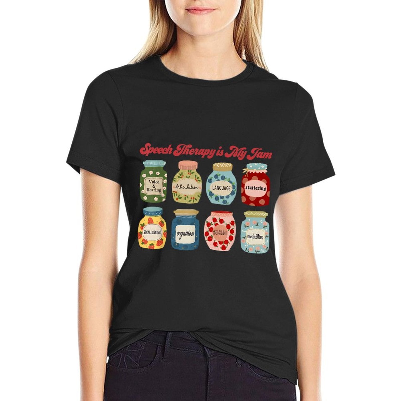 - Avoid bleach to preserve the Speech Therapy Is My Jam Speech Language Pathologist SLP T-shirt’s bold graphics and cotton integrity.