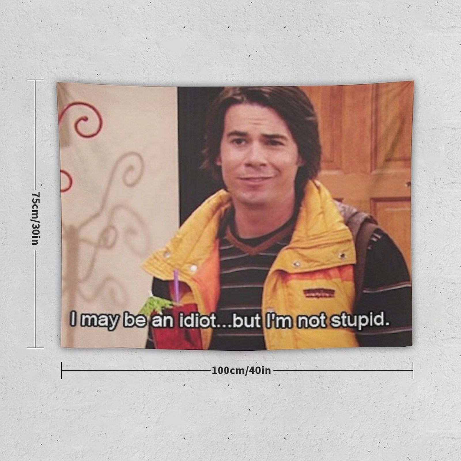 BionZax's Spencer Shay- I May Be An Idiot, But I'm Not Stupid Tapestry for Bedroom, College Dorm. Spencer Shay- I May Be An Idiot, But I'm Not Stupid Tapestry to decorate your bedroom, college dorm, living room, or kitchen wall, it is the best gift for funny, meme, aesthetic, trendy, simple, fashion, music, abstract, fantasy, modern tapestry for girls, men, boys, teen, women, kids.